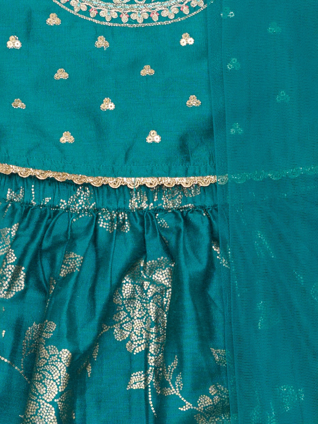Teal Embroidered Choli Foil Print Ghargra & Dupatta Set