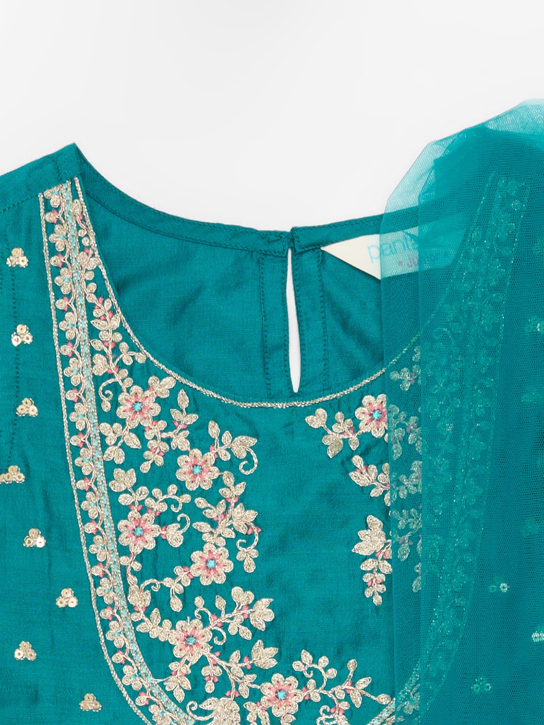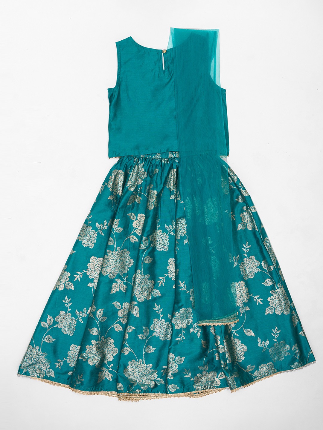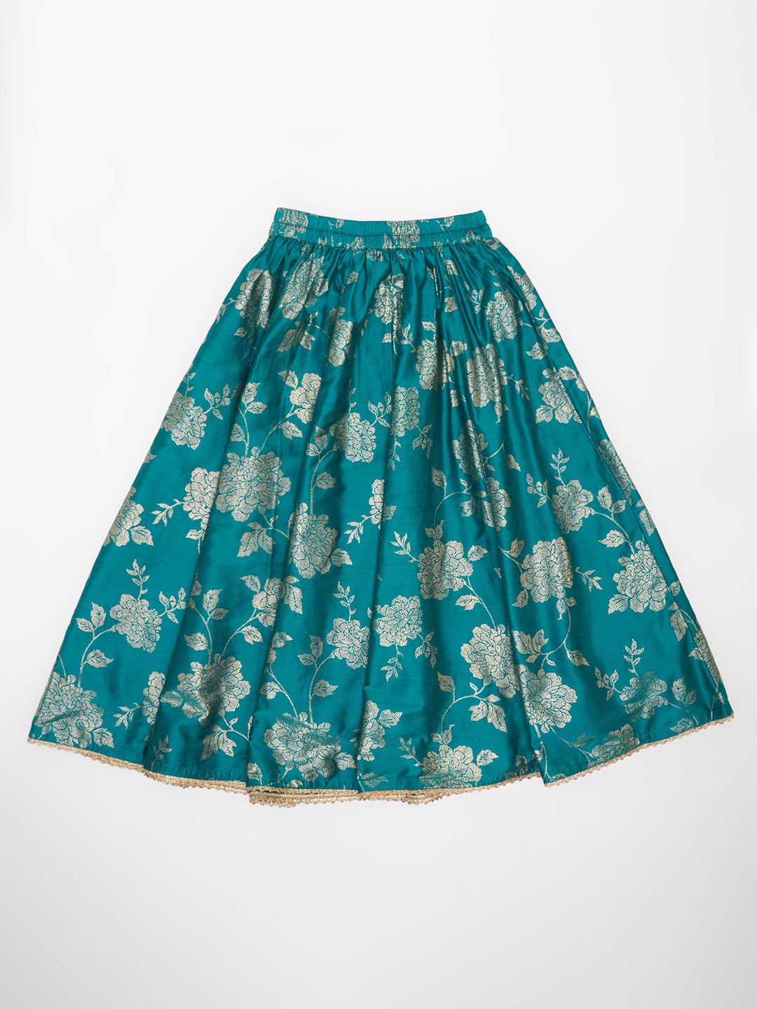 Home/Lehengas/Akkriti By Pantaloons/teal embroidered choli foil print ghargra & dupatta set