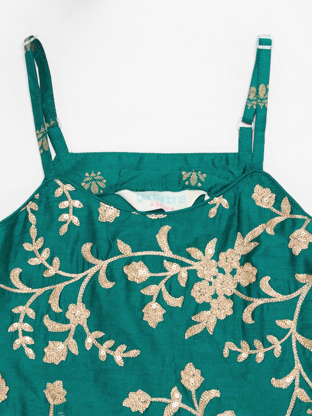 Home/Kurta Sets/Akkriti By Pantaloons/teal embroidered strappy kurta & panelled palazzo set