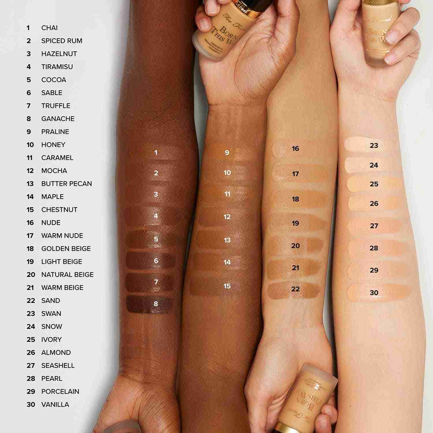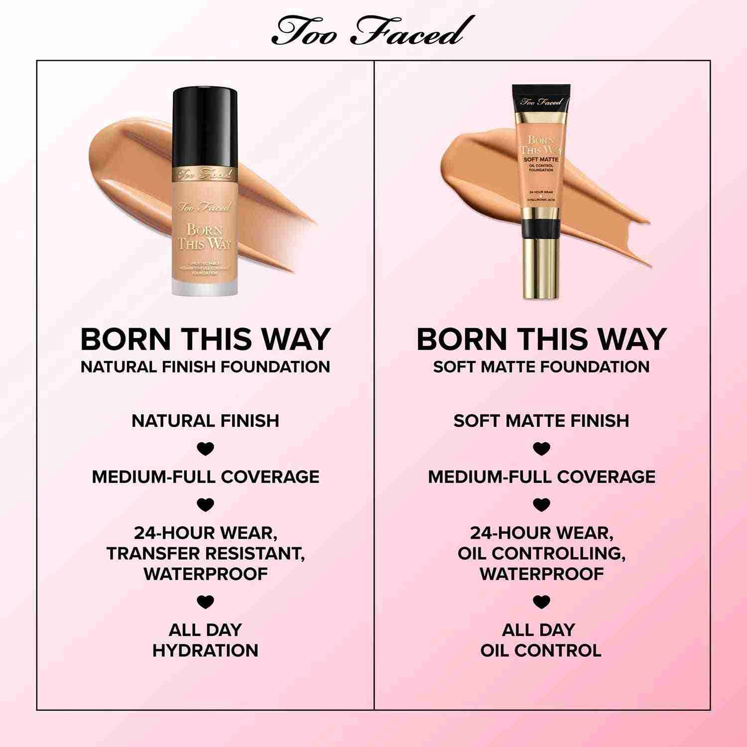 Blur imperfections and boost confidence with the Too Faced Born This Way Foundation - Almond (30 ml). It is a weightless foundation that blends seamlessly into your complexion. Offering medium-to-full undetectable coverage, this blurring foundation delivers a smooth, radiant finish that lasts up to 24 hours. Infused with skin-loving ingredients like coconut water, alpine rose, and hyaluronic acid, the Too Faced foundation hydrates while enhancing elasticity and tone. Also, this vegan, oil-free formula keeps skin balanced without clogging pores or feeling heavy.