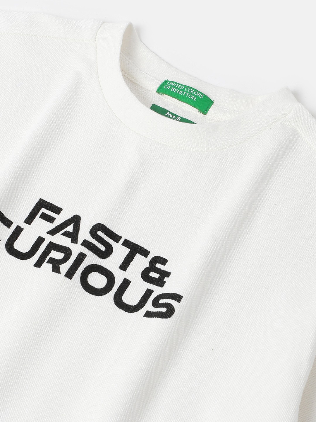 United Colors of Benetton Boxy Fit Round Neck Printed Exploded Placement Car Pique T-Shirt
