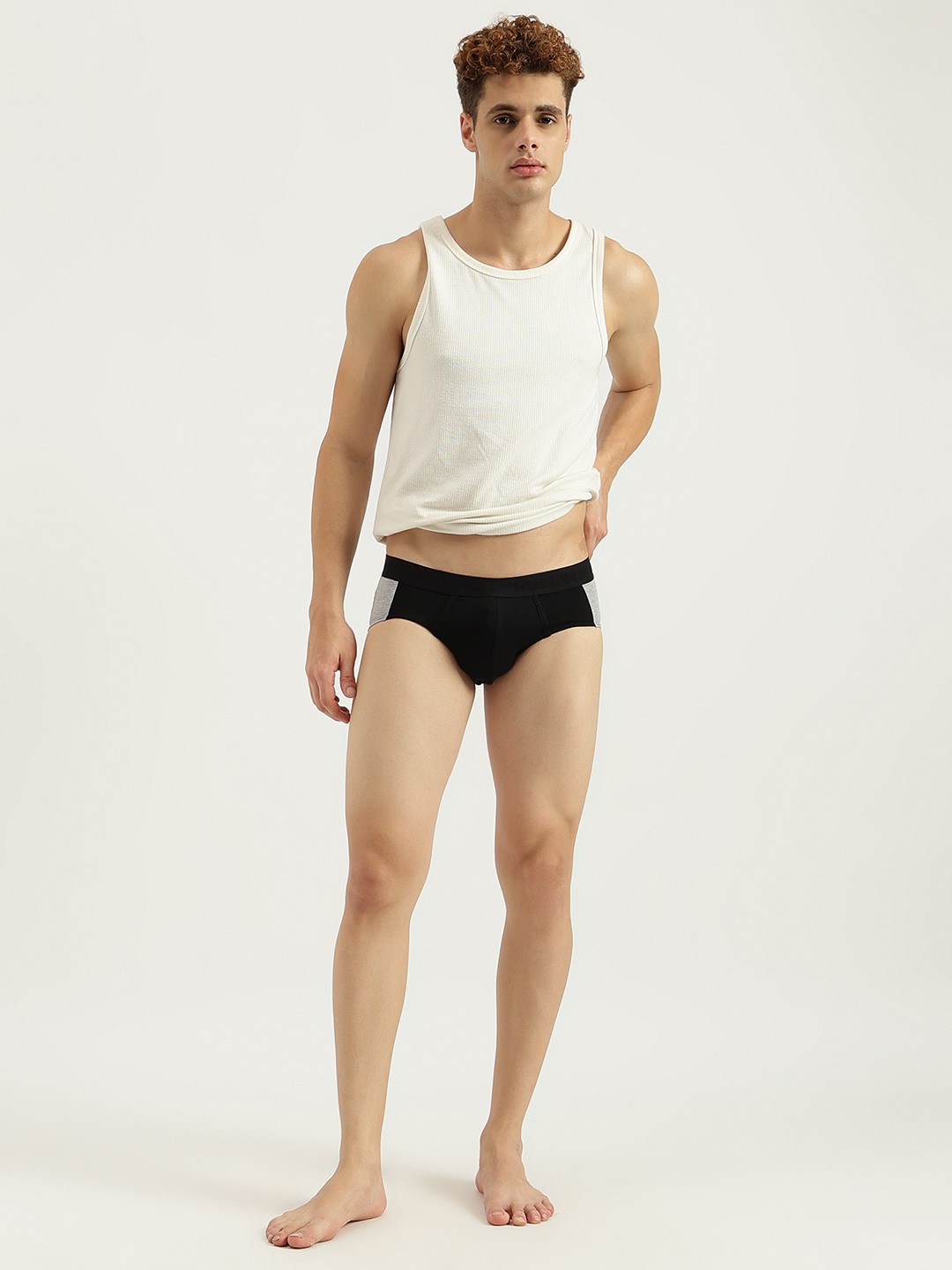 Elevate your essentials with our black colorblock briefs for men. Featuring a regular fit and low rise design, these briefs offer comfort and style. The outer elastic closure ensures a secure fit, while the cotton blend fabric provides breathability. Perfect for everyday wear, these briefs redefine modern masculinity.