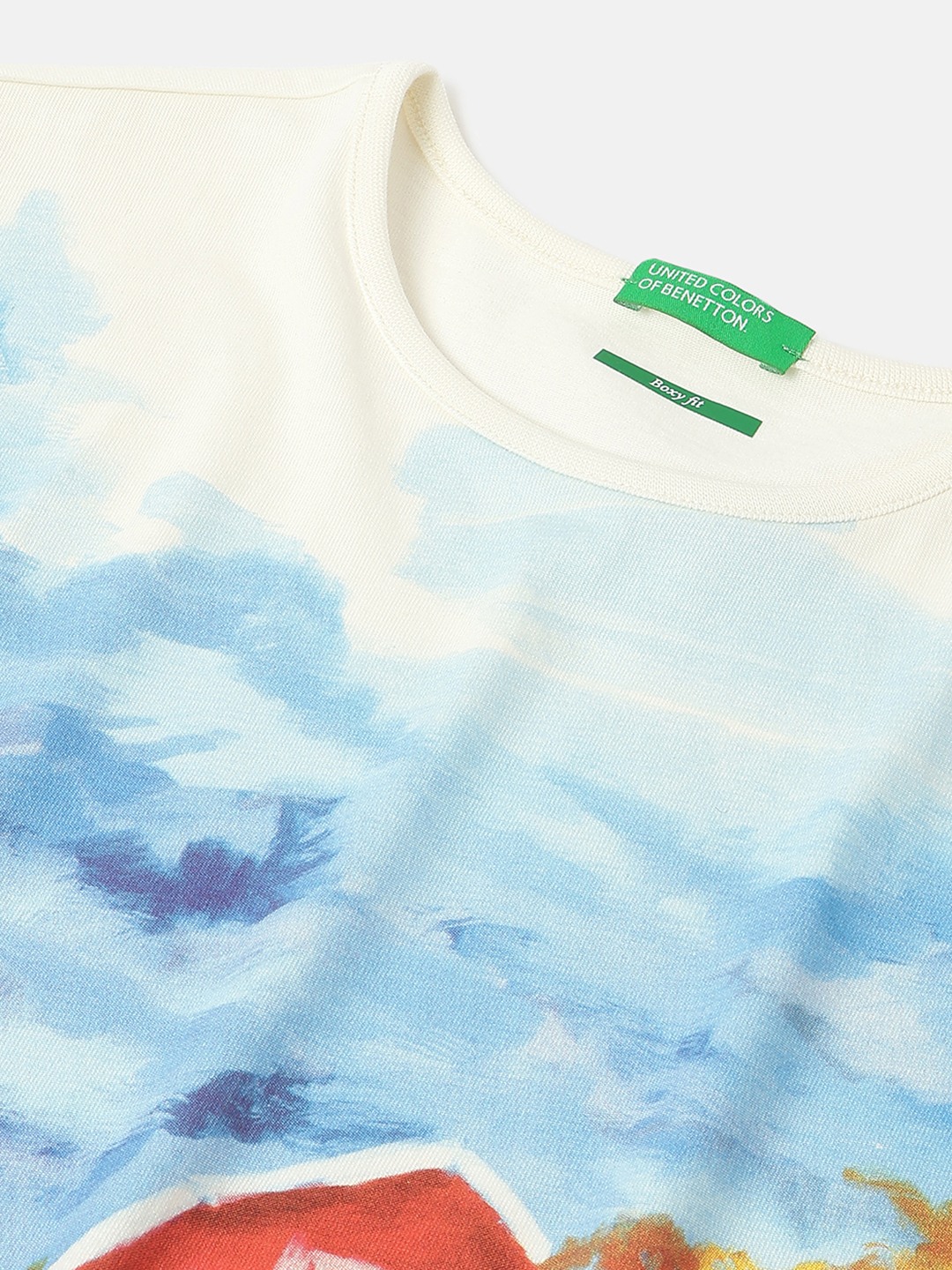 United Colors of Benetton Cropped Fit Round Neck Graphic Print T-Shirt