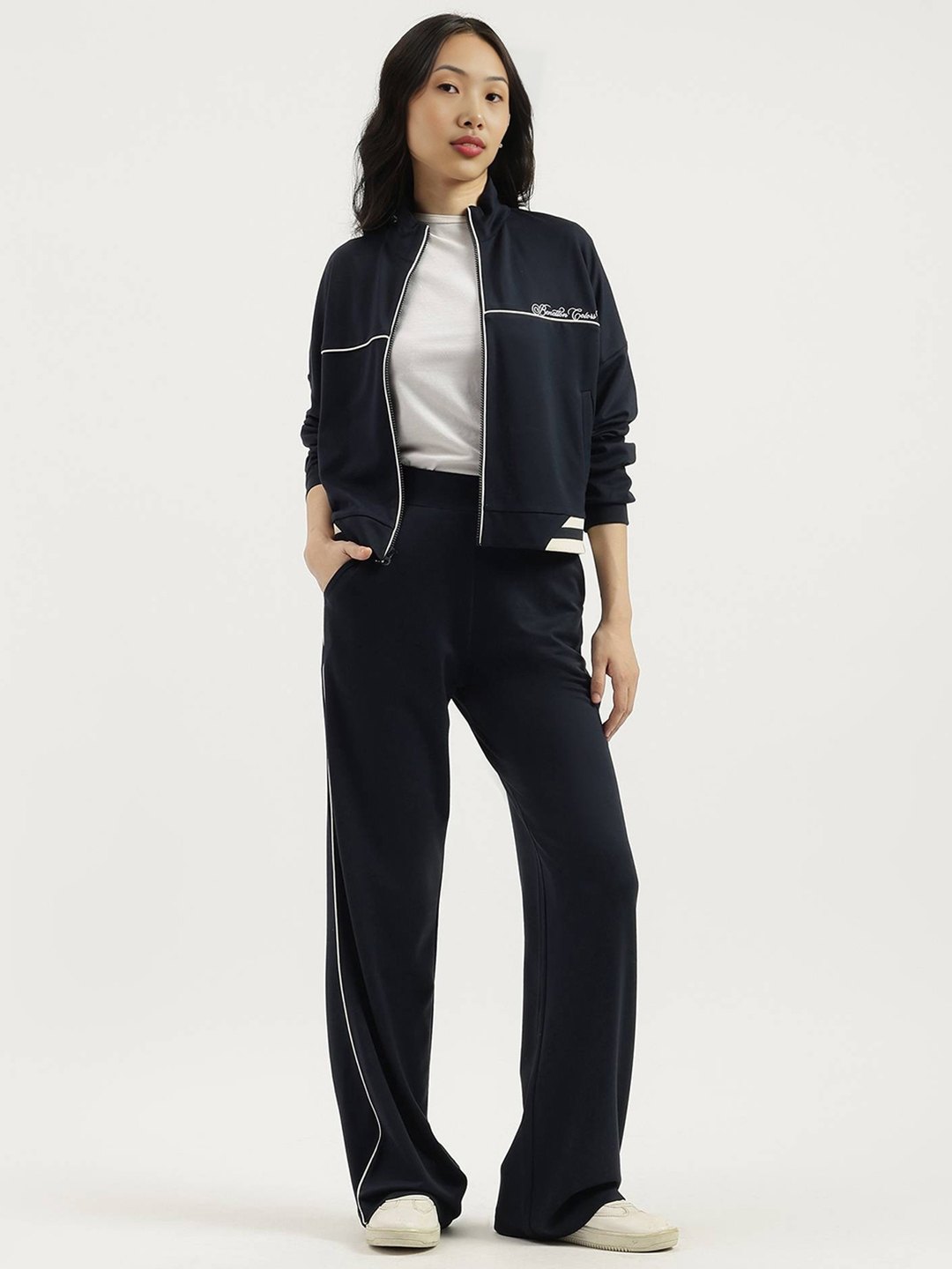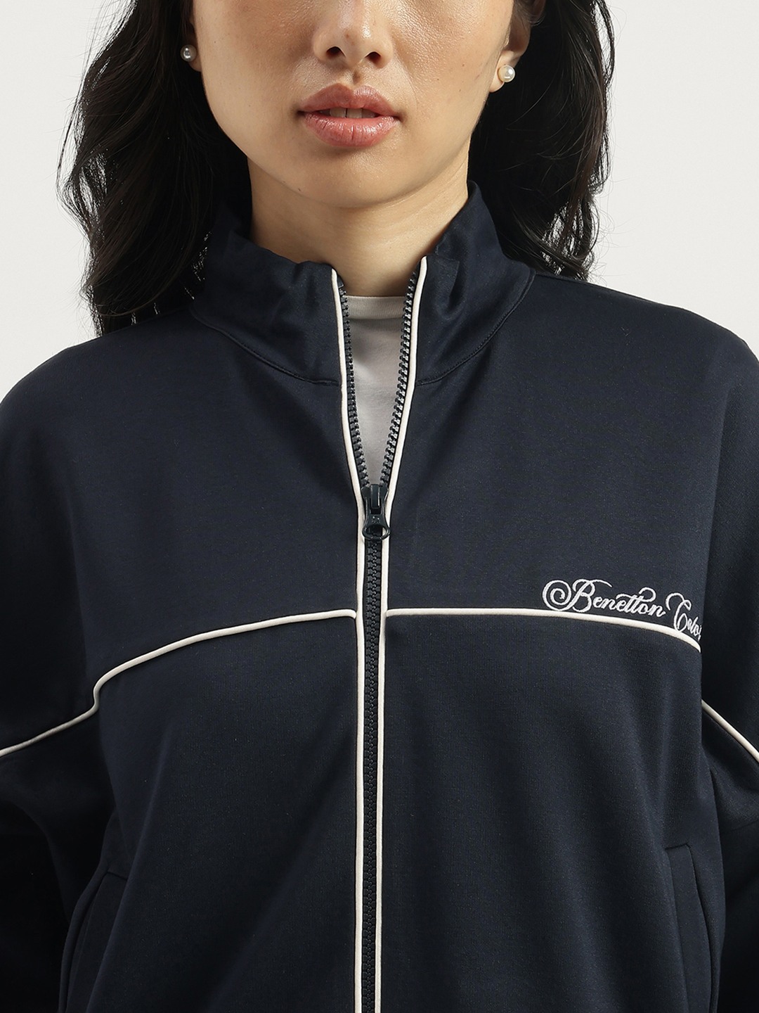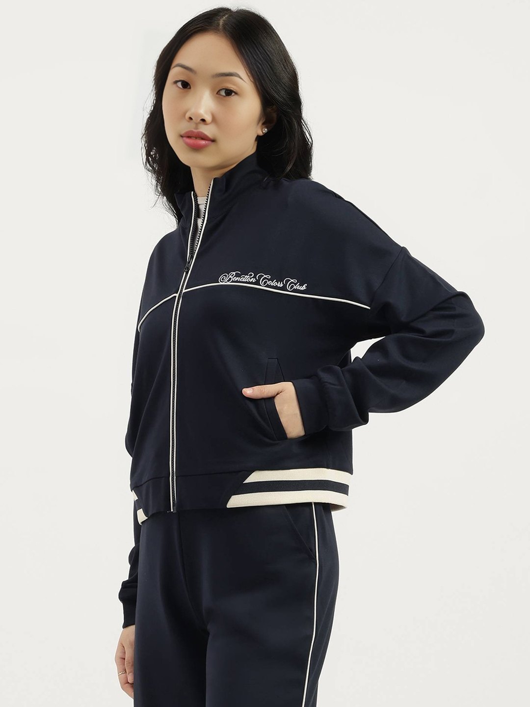 United Colors of Benetton Mock Neck Solid Ponte Zip Up Jacket