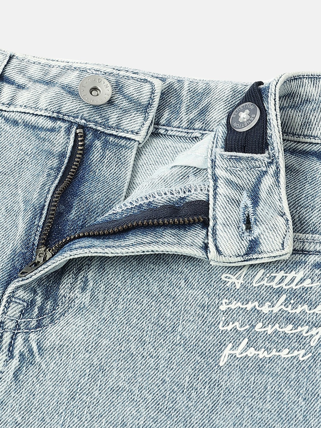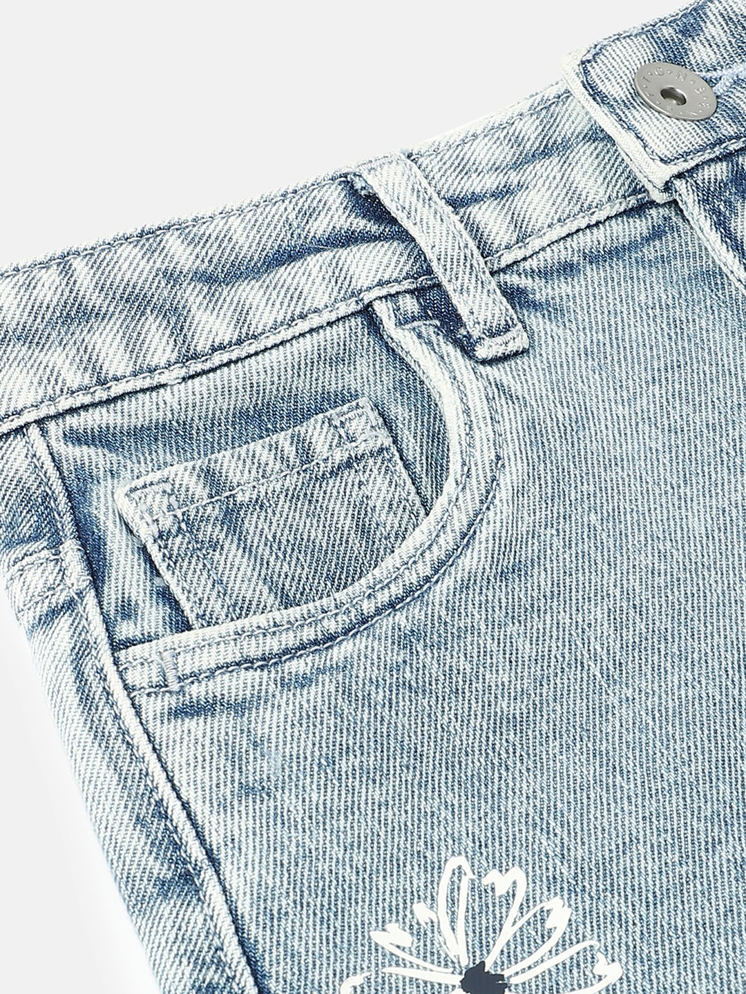 United Colors of Benetton Poodle Printed Regular Fit Ice Wash Denim Skirt