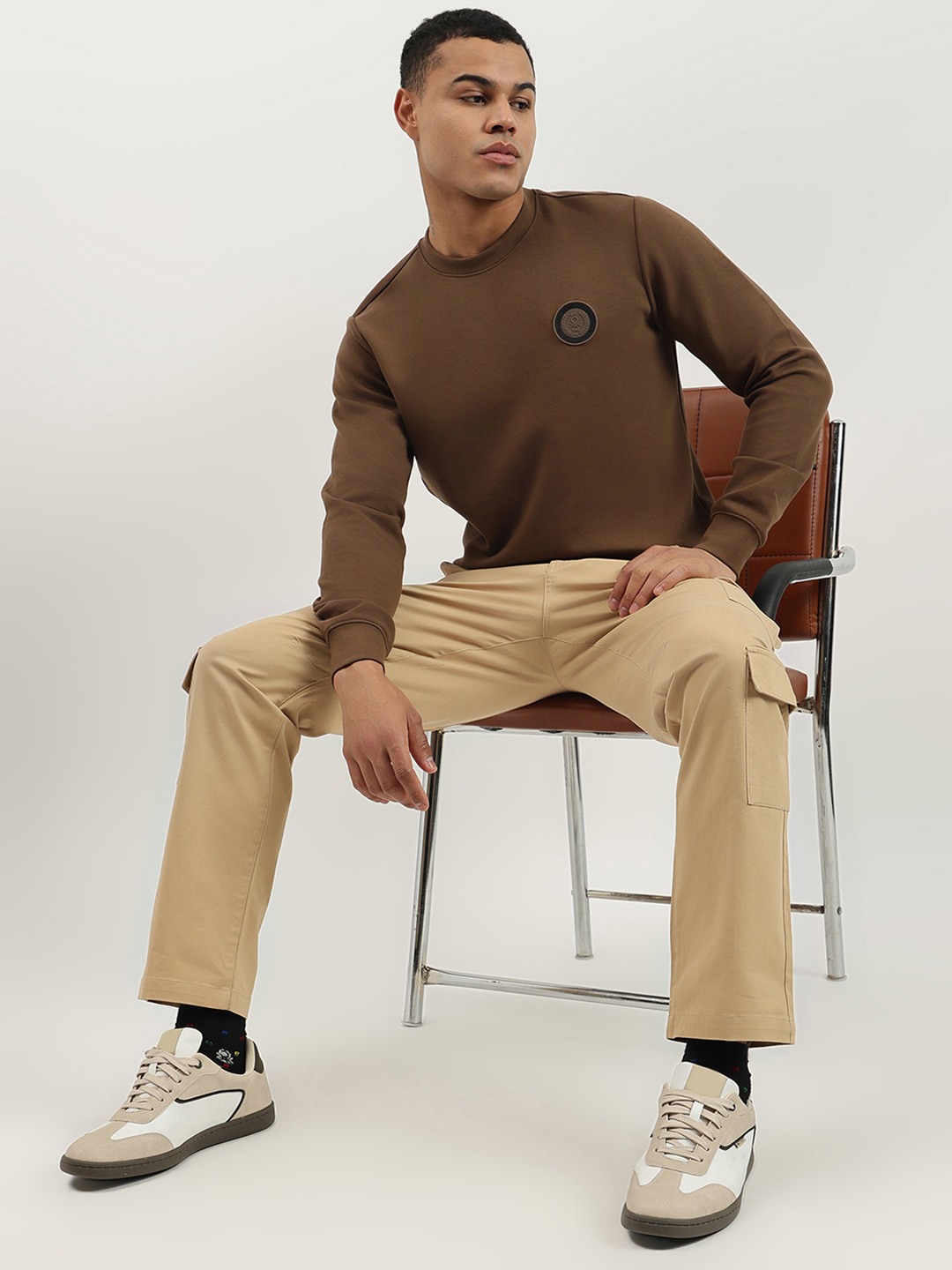 Discover comfort and style with our chocolate-colored interlock sweatshirt. Crafted from a premium cotton blend, it features a regular fit, solid pattern, and full sleeves. The crew neck design and pull-on closure ensure easy wear. Perfect for casual outings, this versatile piece is a must-have for every man's wardrobe.
