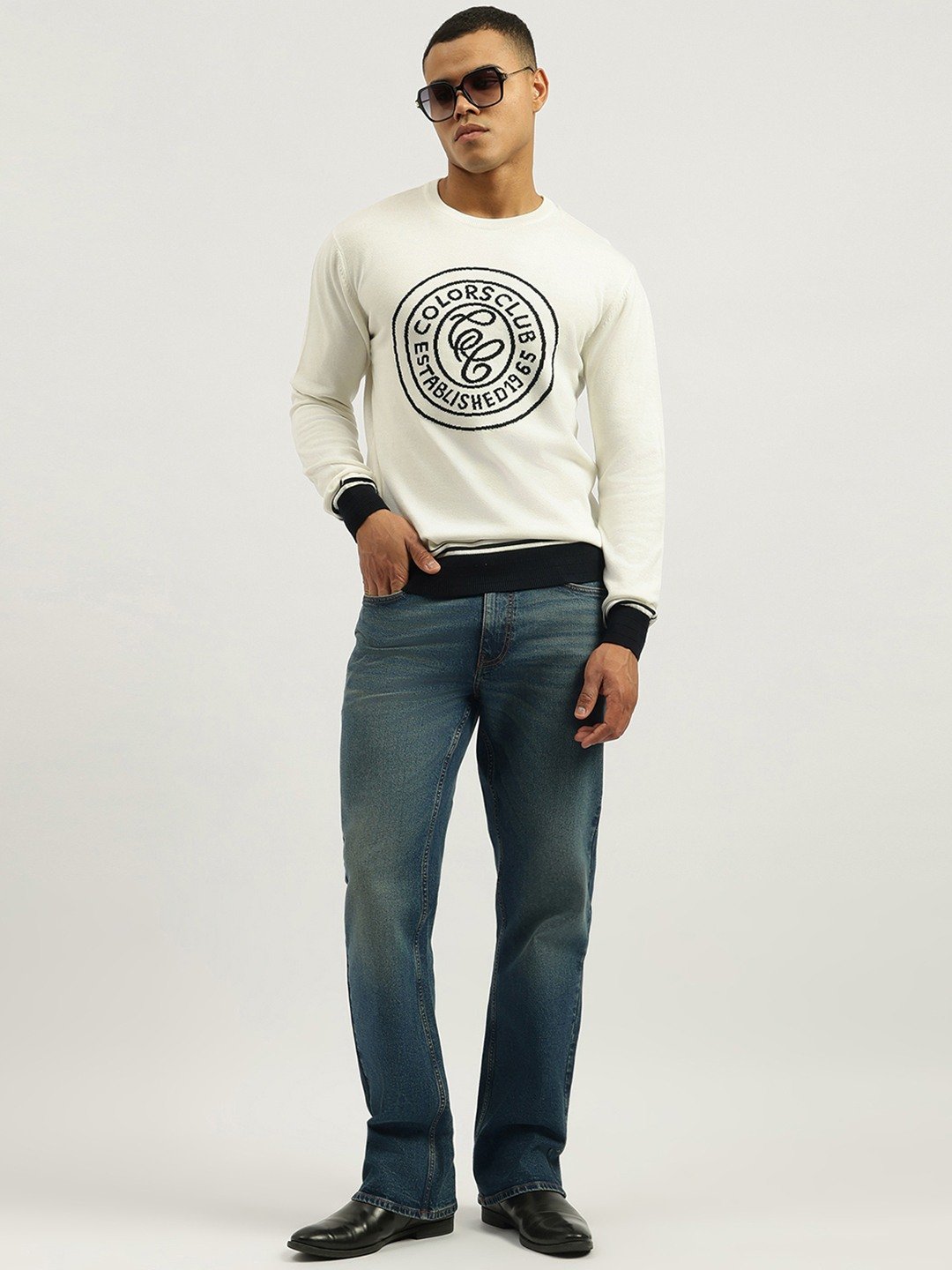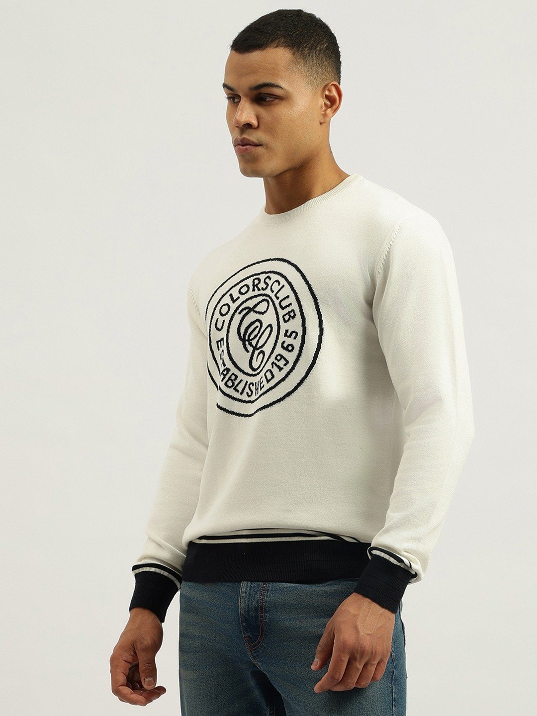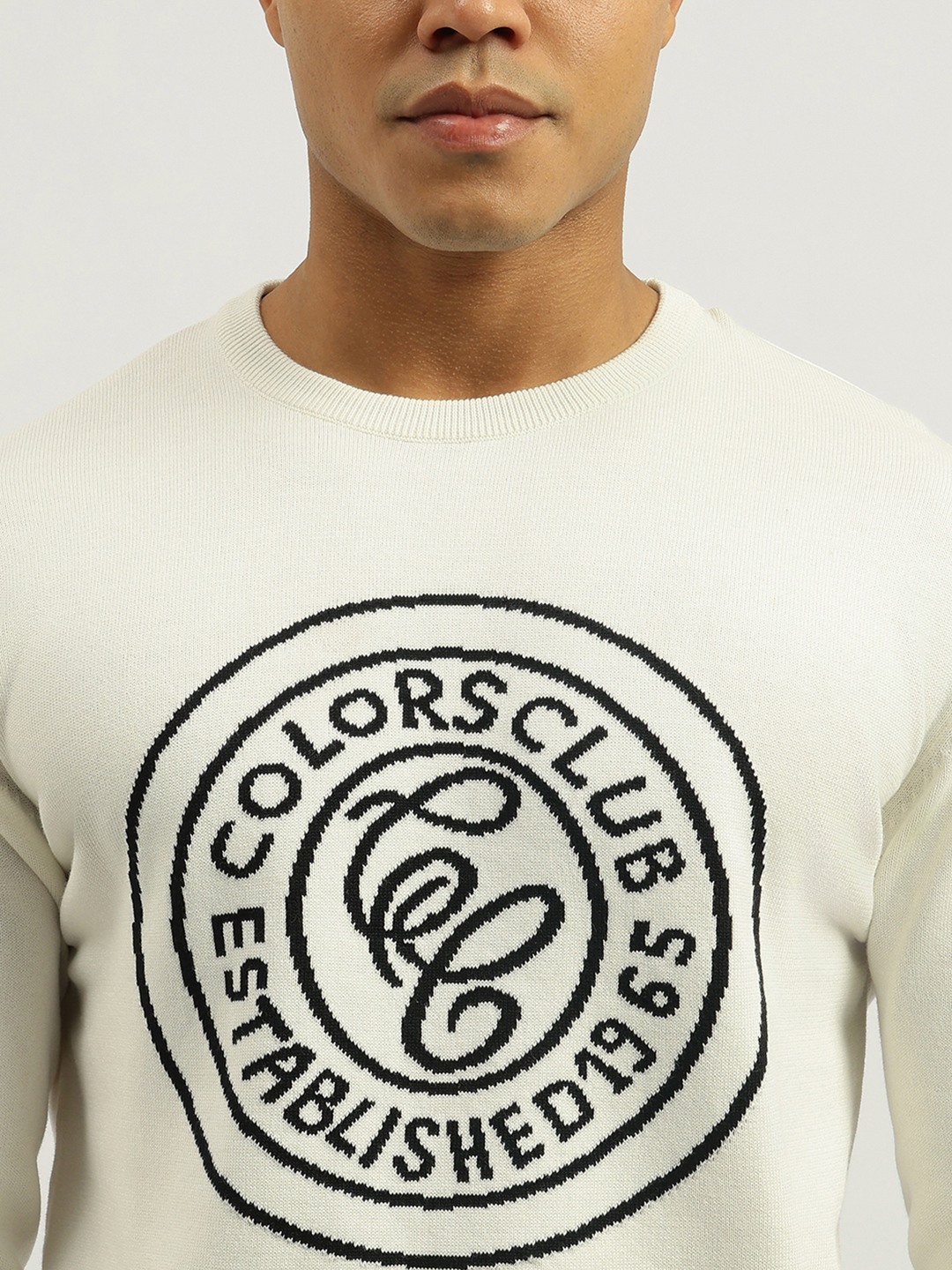 Discover comfort and style with our off white sweatshirt featuring a trendy typography pattern. Designed for men, this regular fit piece offers long sleeves and a classic crew neck. Made from pure cotton fabric, it ensures breathability and softness. The pull-on closure adds convenience to your everyday wardrobe essentials.