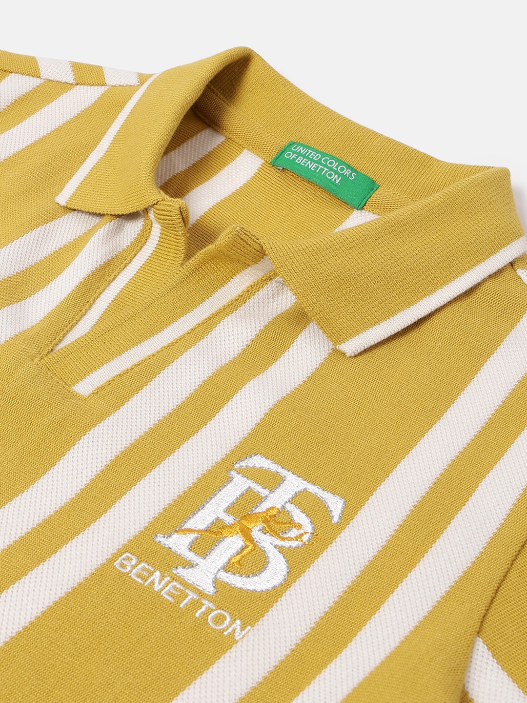 United Colors of Benetton Regular Fit Johny Collar Vertical Stripes T-Shirt