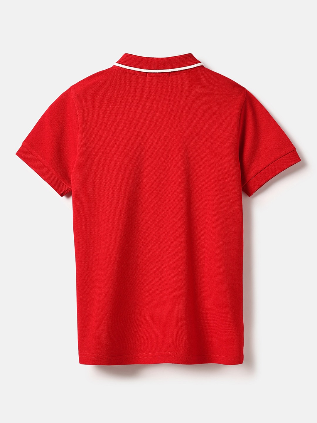 This red polo t-shirt for boys offers a regular fit and solid pattern, perfect for casual outings. Made from pure cotton, it ensures comfort and breathability. The short sleeves and button closure add a classic touch, making it a versatile wardrobe staple for any young fashion enthusiast.