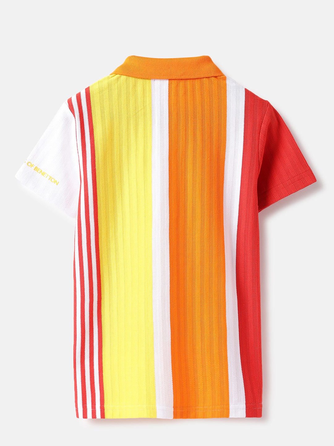United Colors of Benetton Regular Fit Polo Neck Striped Vertical Structure Engineered T-Shirt