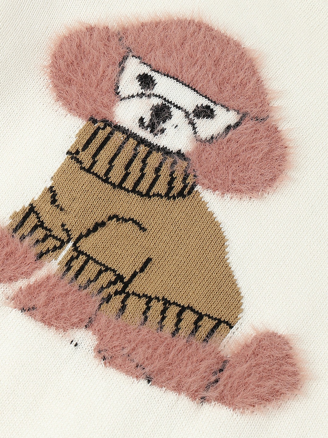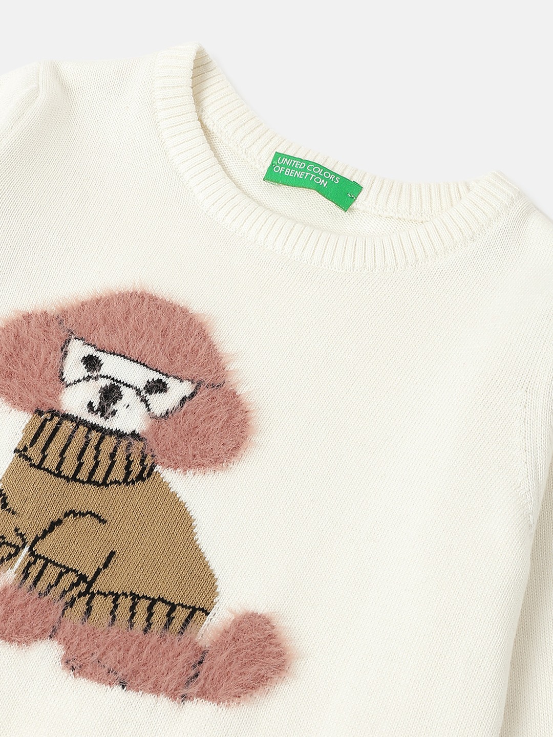 United Colors of Benetton Regular Fit Round Neck Applique Poodle In Furry Yarn Sweatshirt