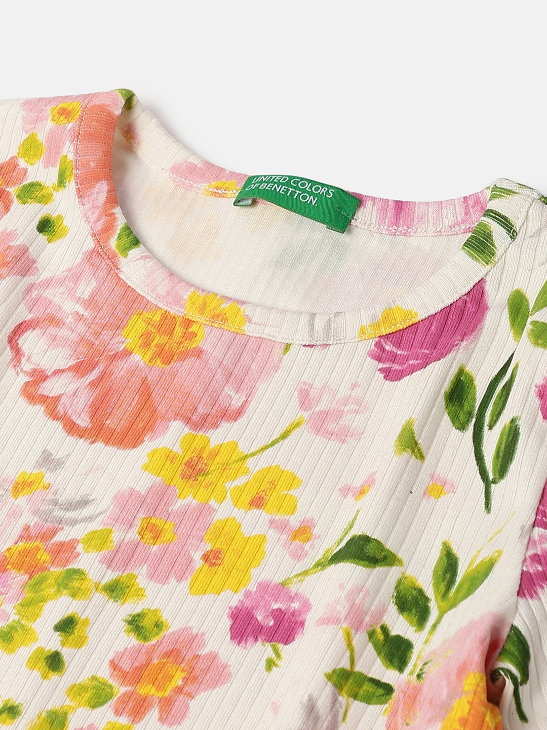 United Colors of Benetton Regular Fit Round Neck Floral Rib Top