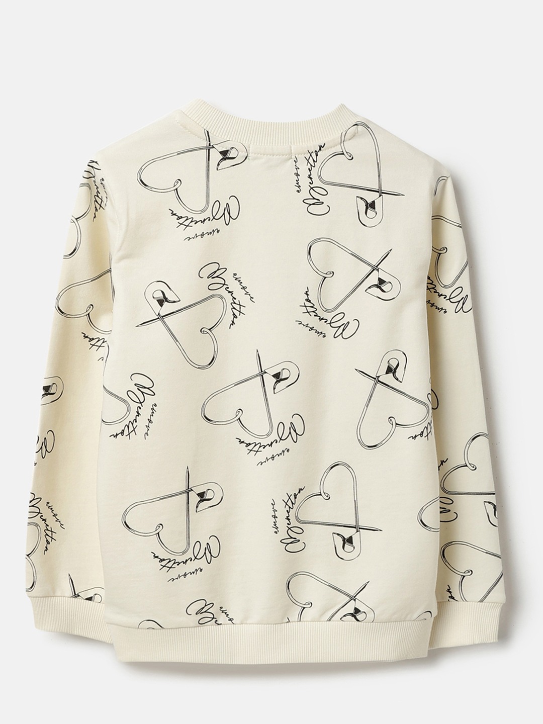 United Colors of Benetton Regular Fit Round Neck Printed Pin Heart All Over Print Sweatshirt