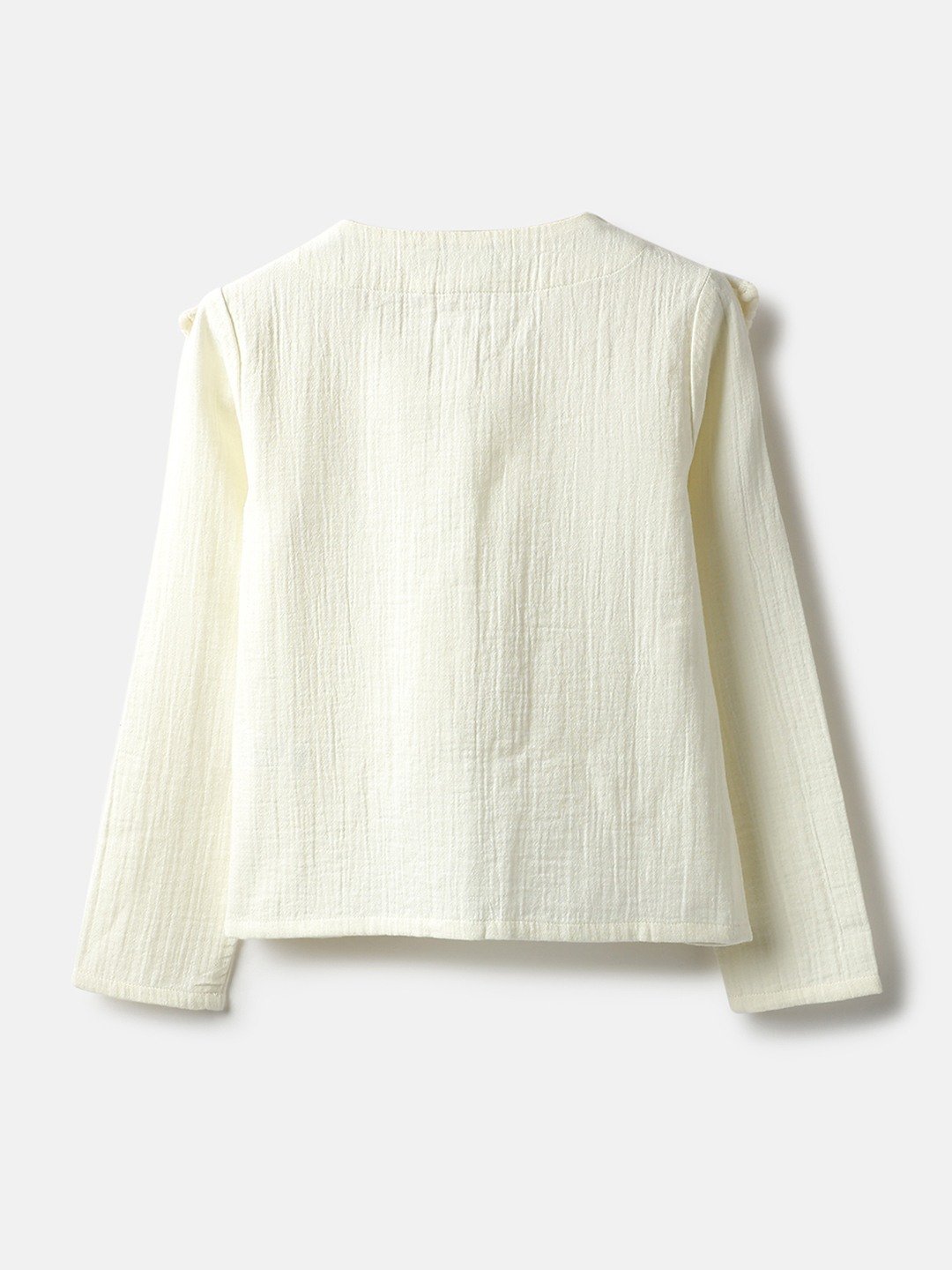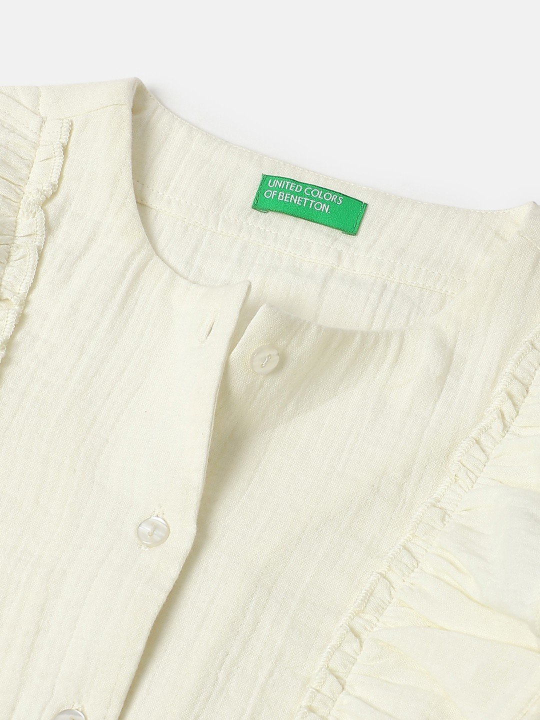 United Colors of Benetton Regular Fit Round Neck Textured Double Cloth Ruffle Top