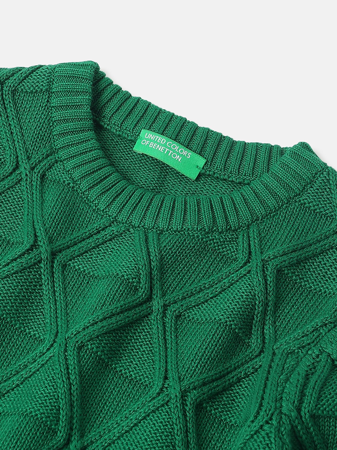 United Colors of Benetton Regular Fit Round Neck Textured Tonal Diamond Structure Sweater