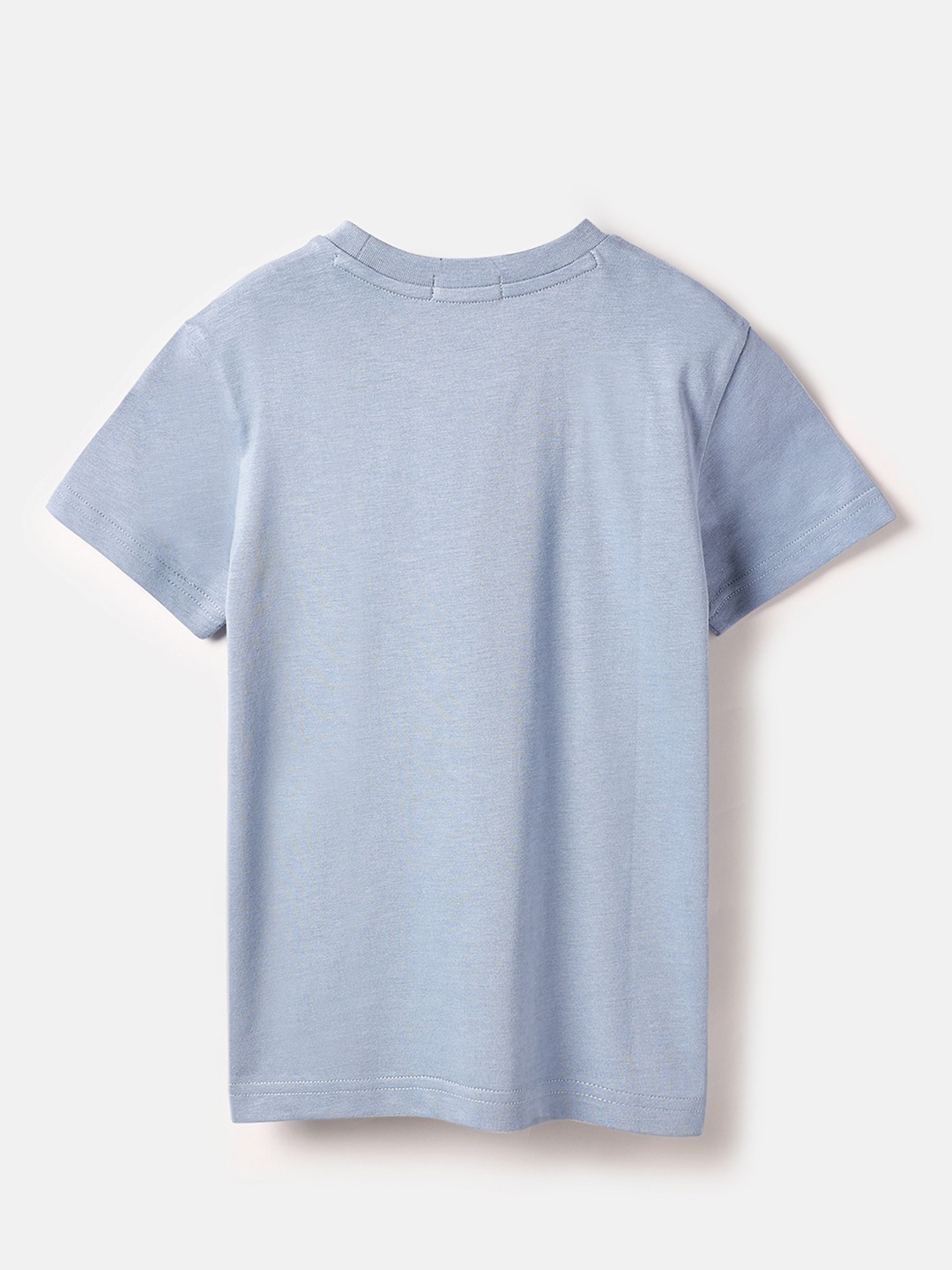 Discover comfort and style with our blue typography pattern t-shirt for boys. Featuring a regular fit, short sleeves, and a round neck, this pure cotton tee ensures breathability and ease. The button closure adds a unique touch, making it perfect for casual outings or playful adventures. Ideal for everyday wear.
