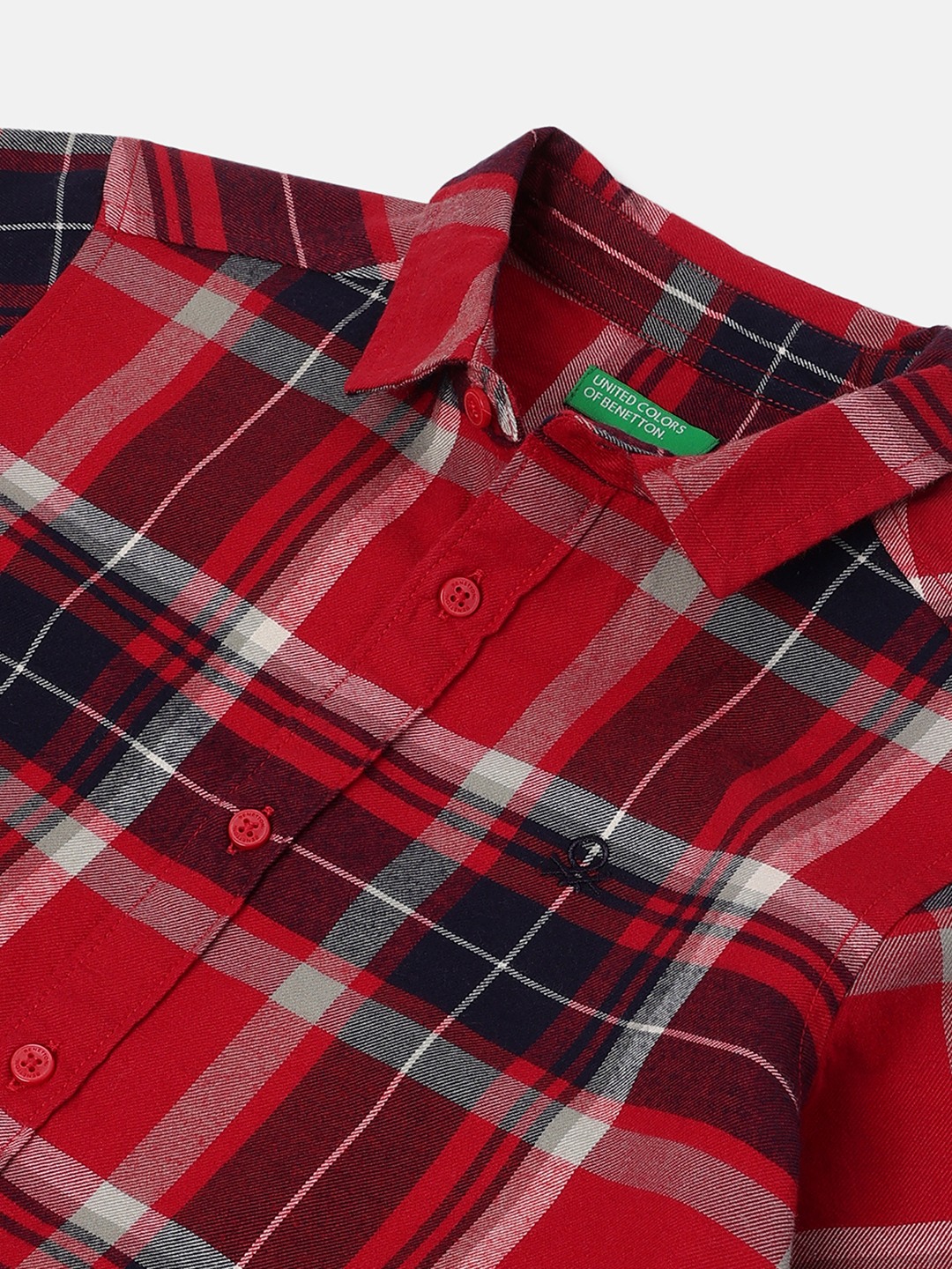 United Colors of Benetton Regular Fit Spread Collar Checkered Brushed Flannel Shirt