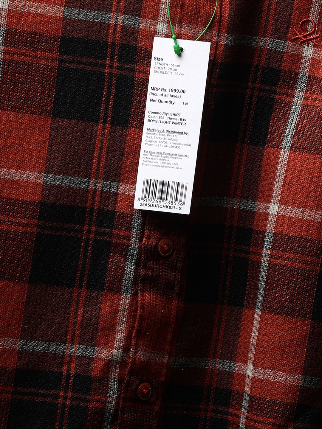 United Colors of Benetton Regular Fit Spread Collar Checkered Light Brushed Check Shirt