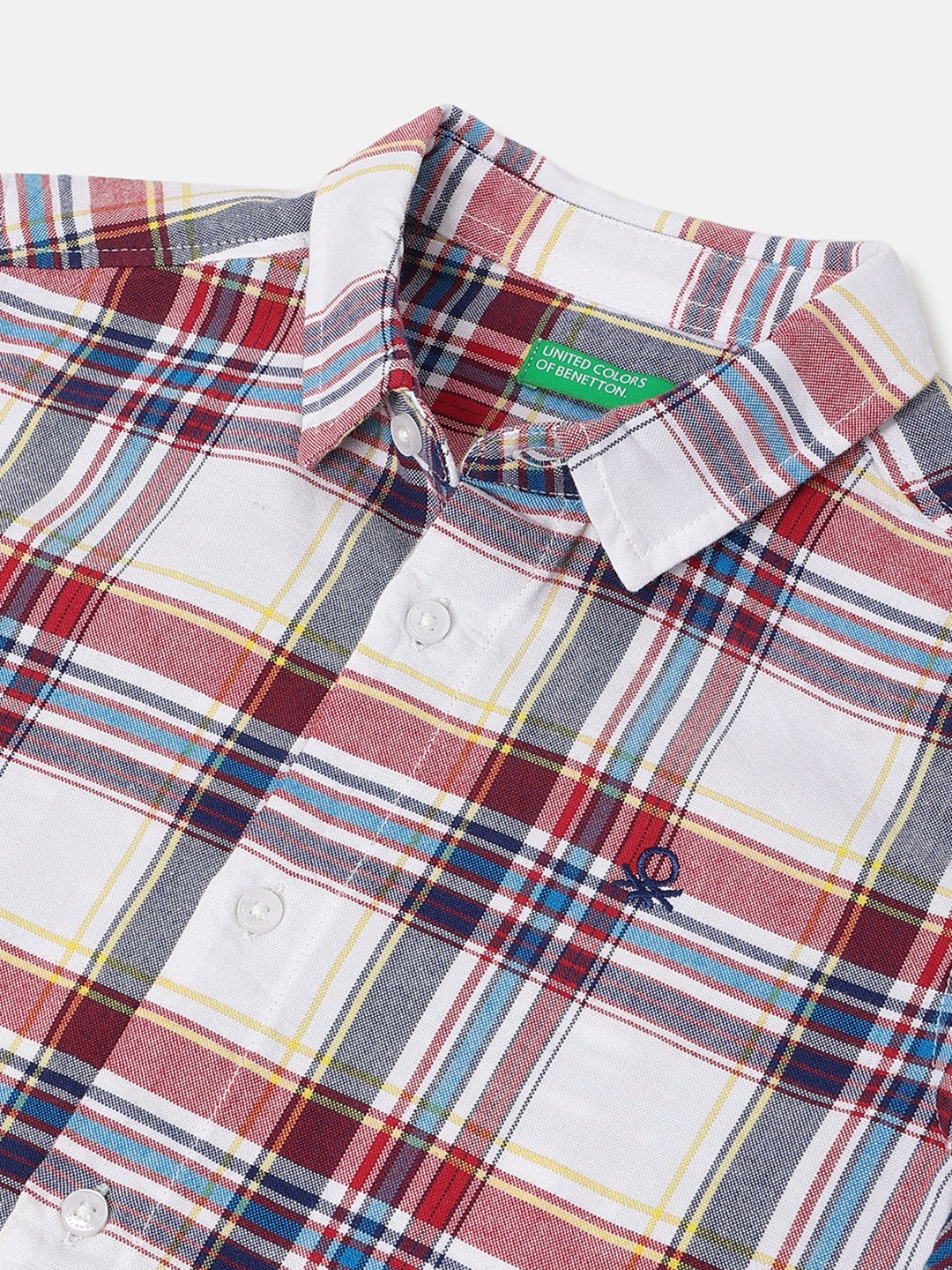 United Colors of Benetton Regular Fit Spread Collar Checkered Oxford Check Shirt