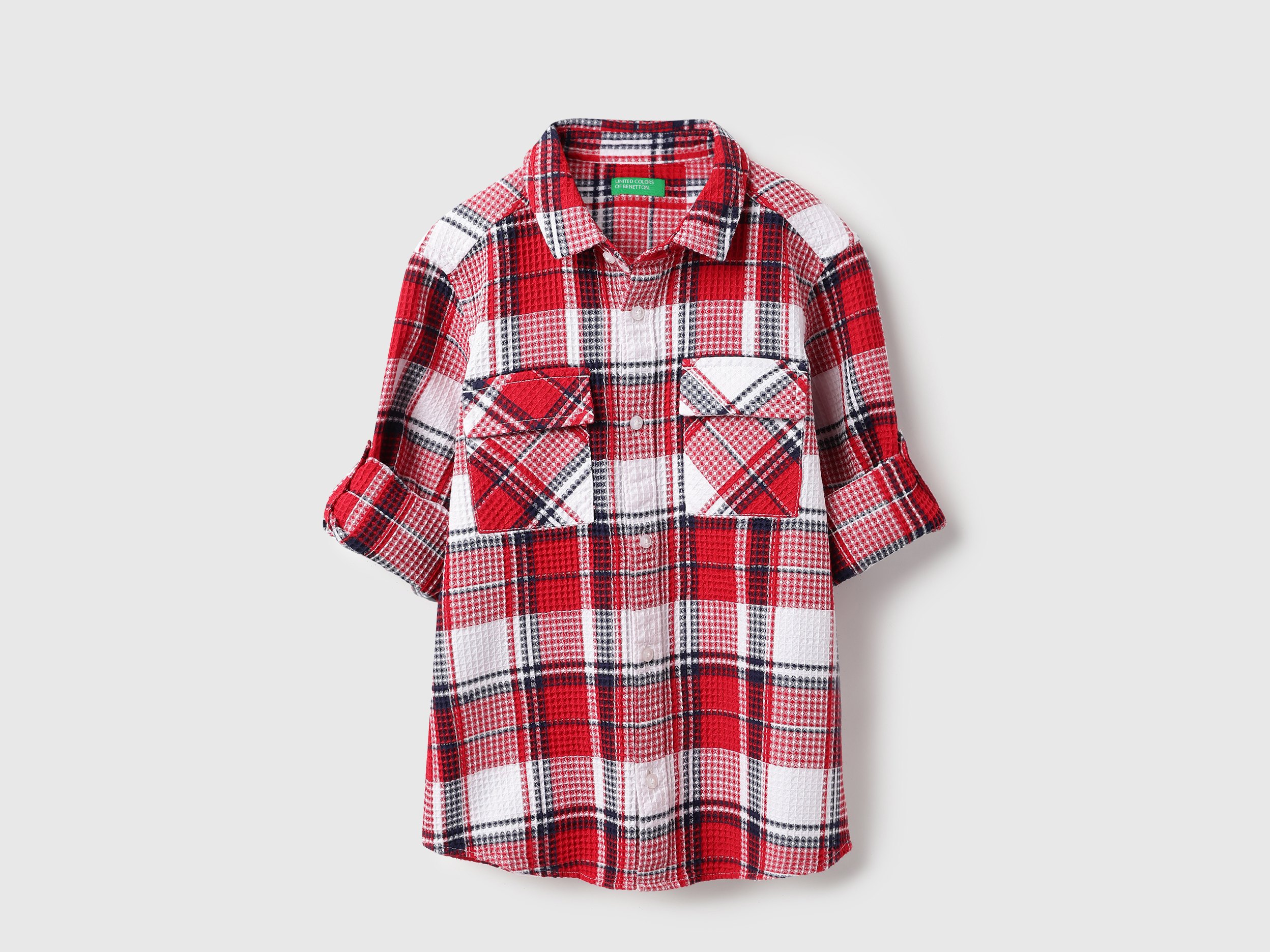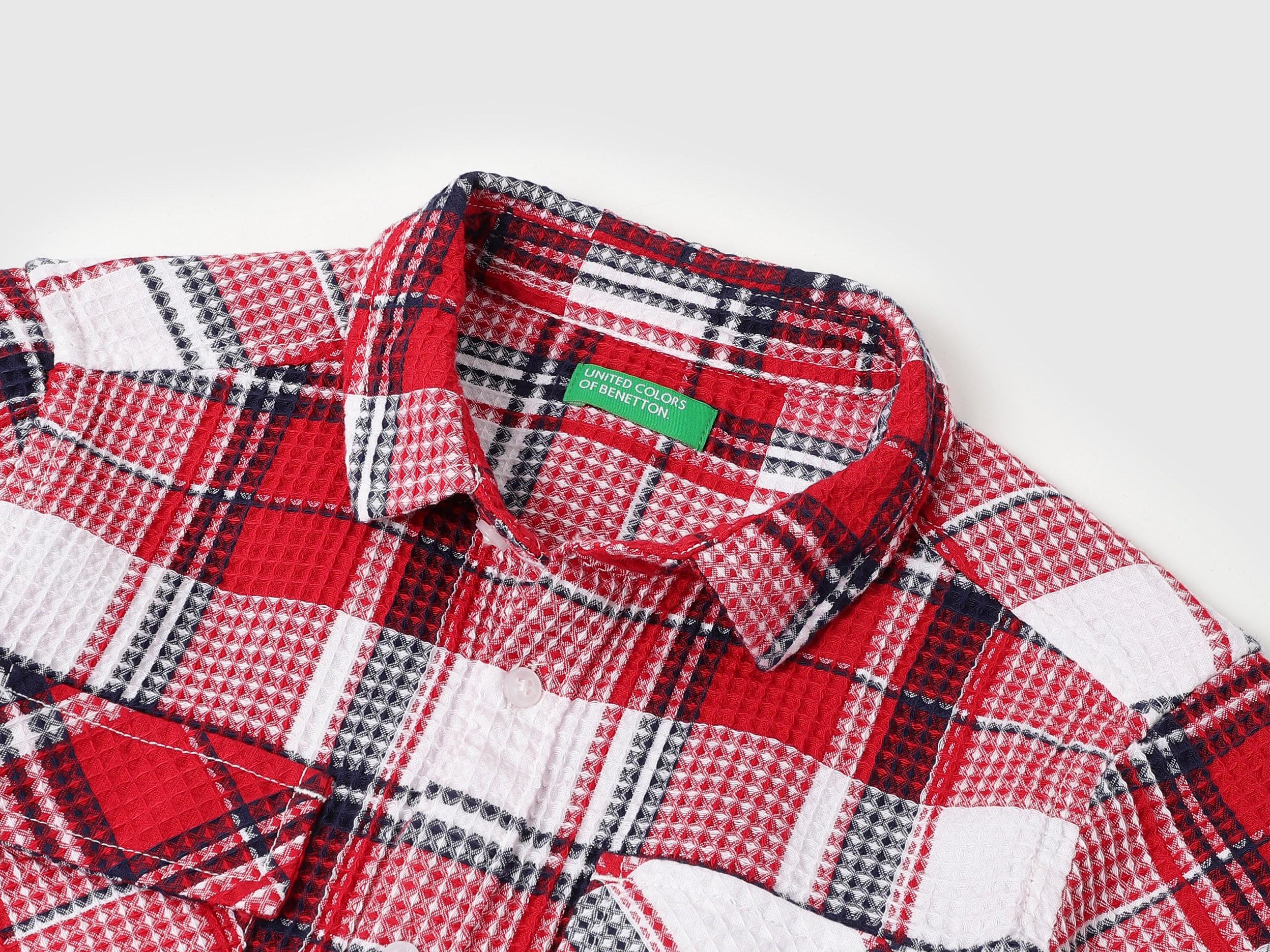 United Colors Of Benetton Regular Fit Spread Collar Checkered Waffle Bright Shirt