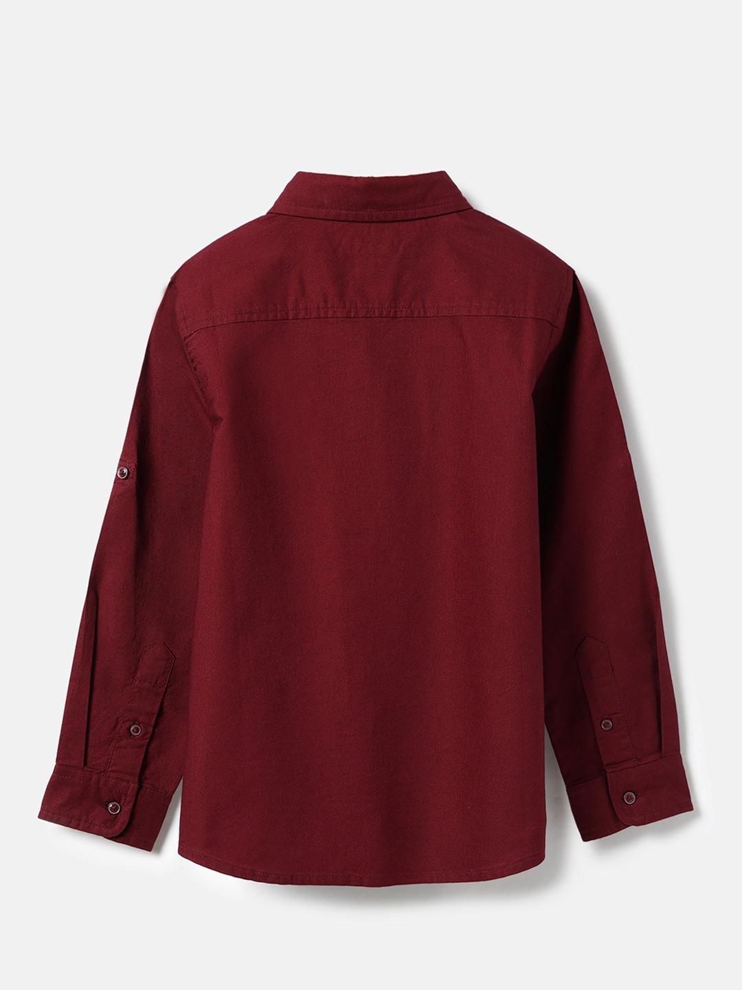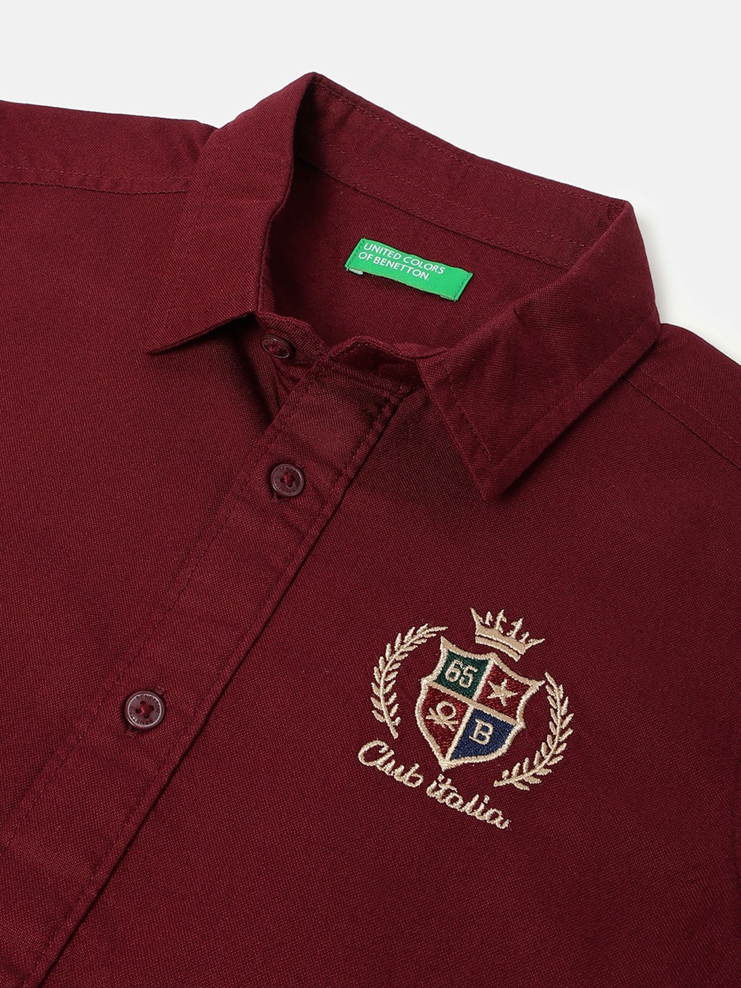 Discover the perfect blend of style and comfort with our maroon shirt for boys. Featuring a regular fit and embroidered badge pattern, this long-sleeve shirt boasts a spread collar and button closure. Made from pure cotton fabric, it's ideal for any occasion, ensuring your young one looks sharp and feels great.