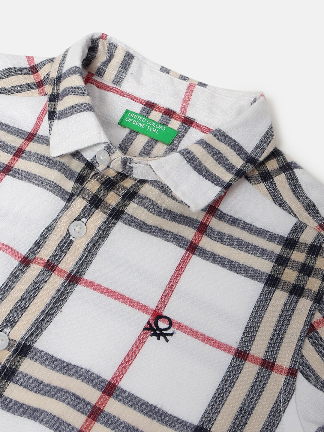 United Colors of Benetton Regular Fit Spread Collar Fake Cord Check Shirt