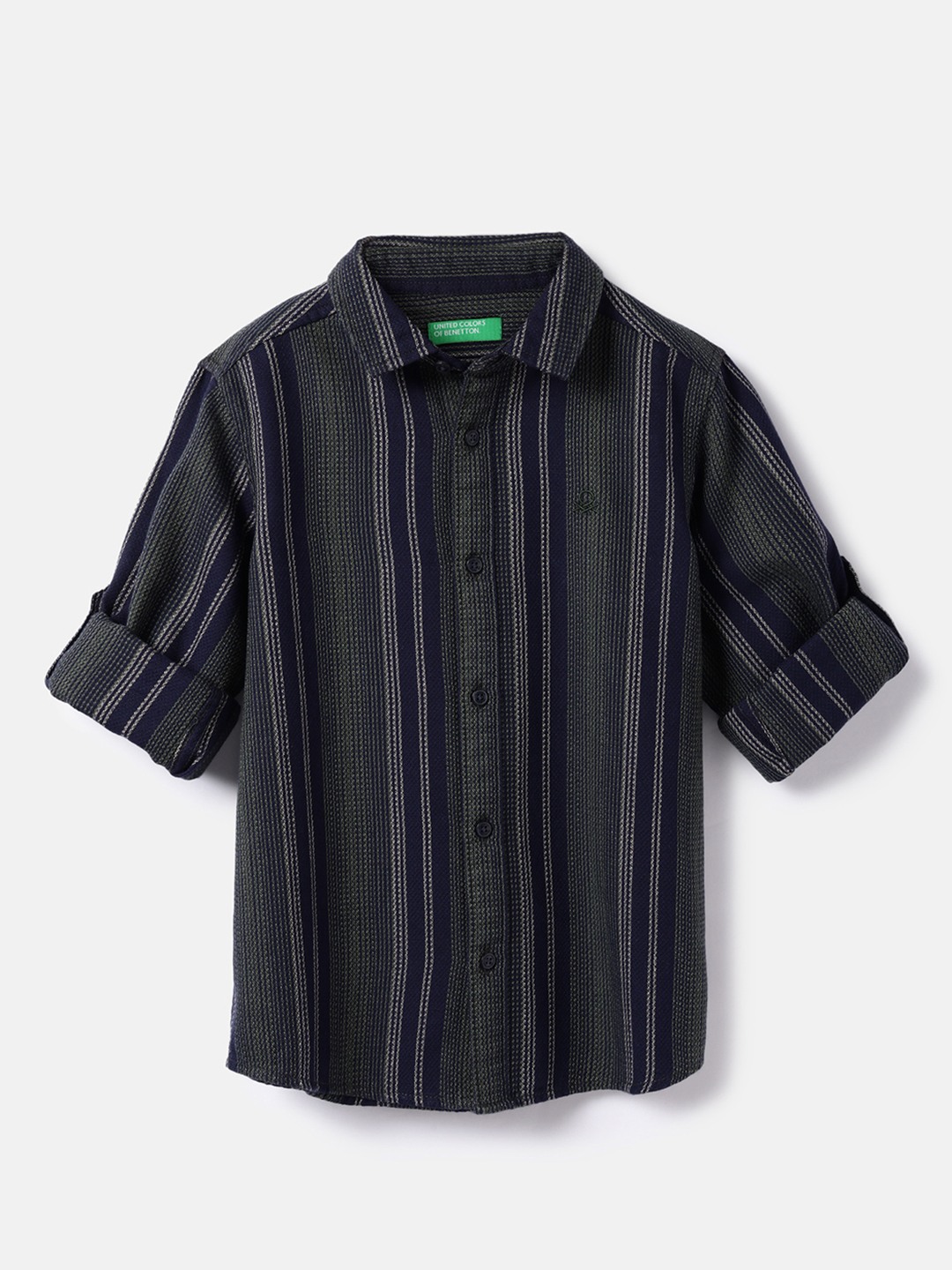 United Colors of Benetton Regular Fit Spread Collar Texture Stripe Shirt