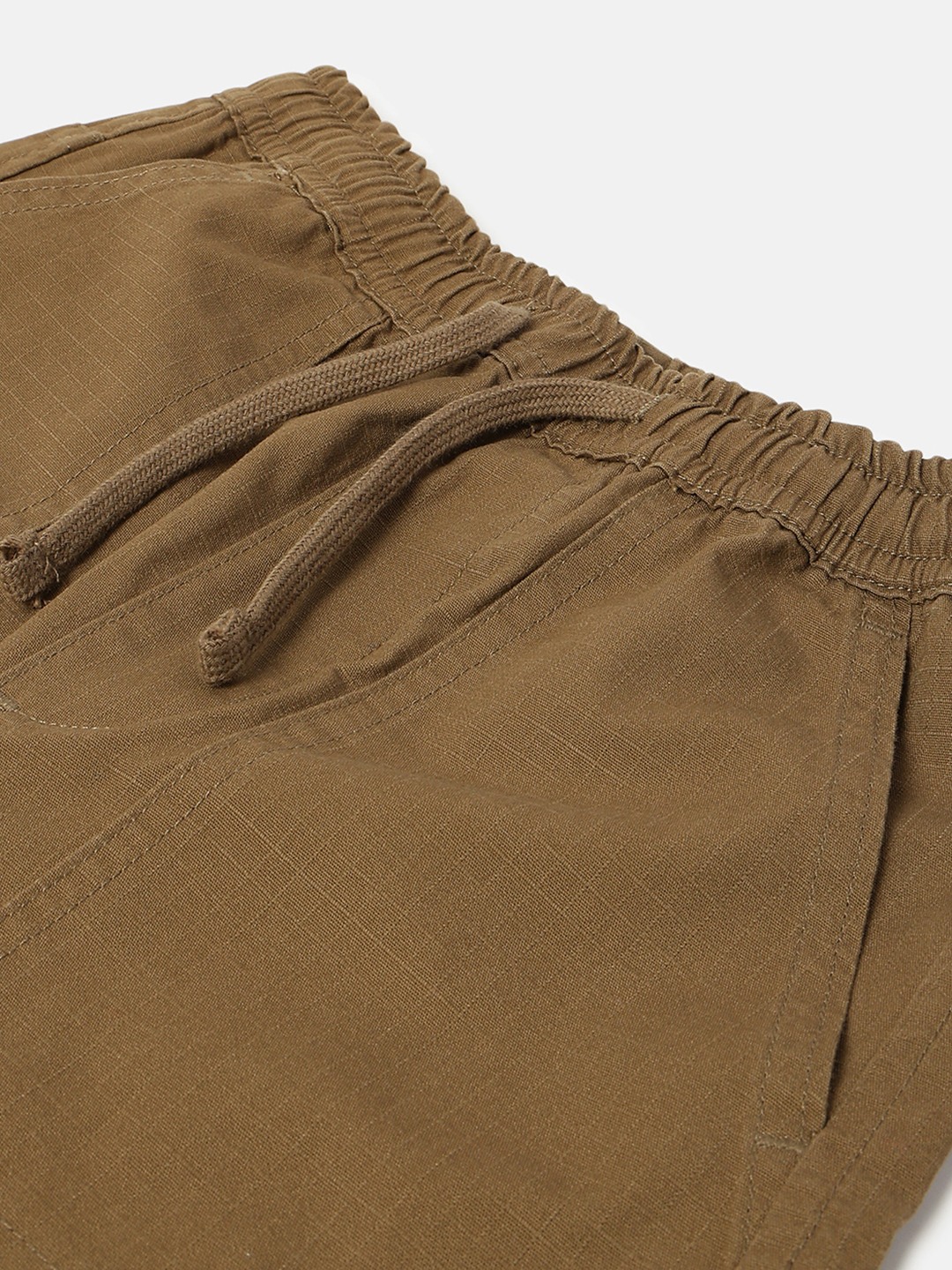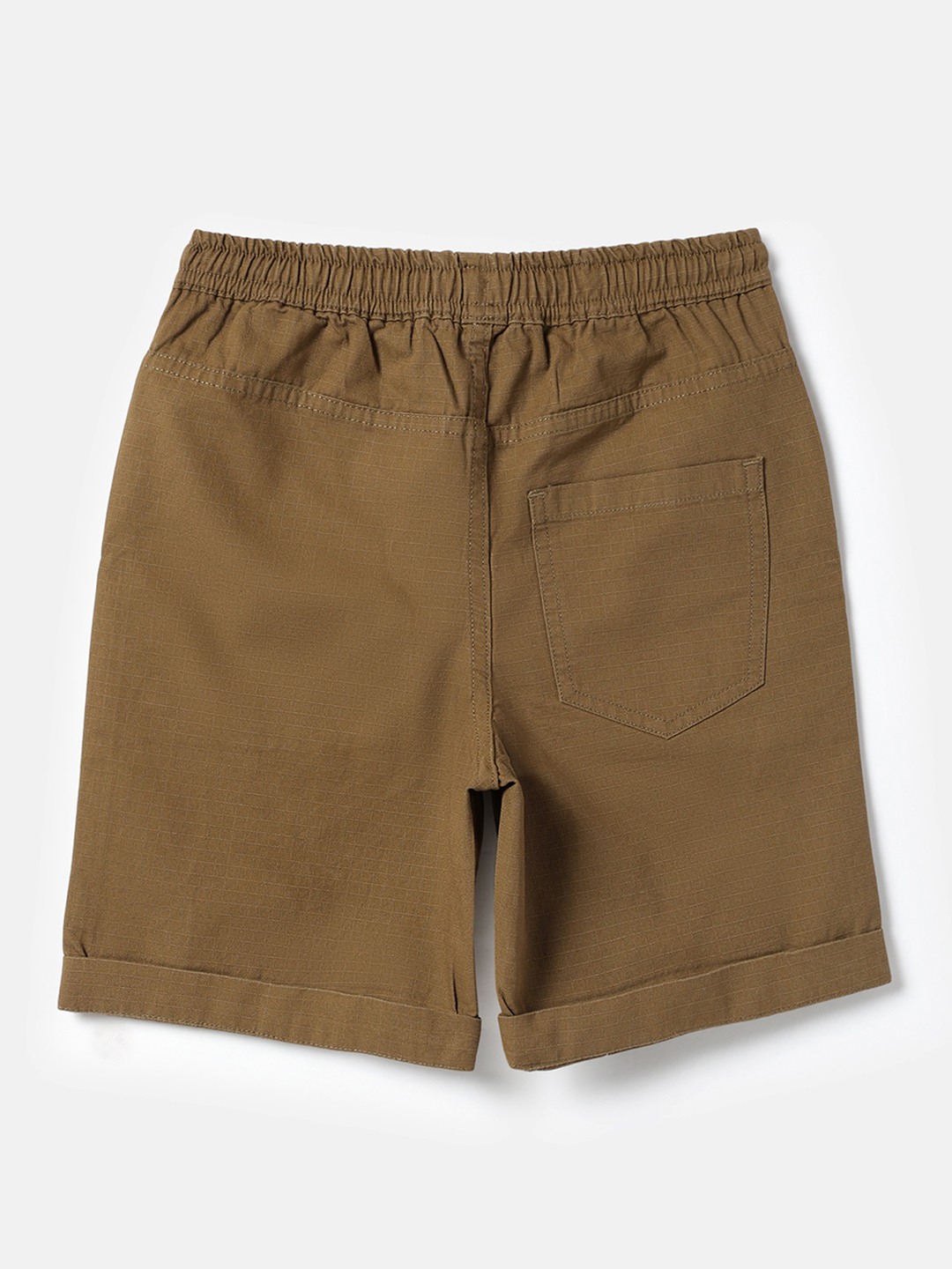 Discover comfort and style with our boys' brown shorts, featuring a regular fit and ribstop pattern. Crafted from pure cotton, these mid-rise shorts offer breathability and durability. The drawstring closure ensures a secure fit, making them perfect for active days. Ideal for casual outings or playtime adventures.