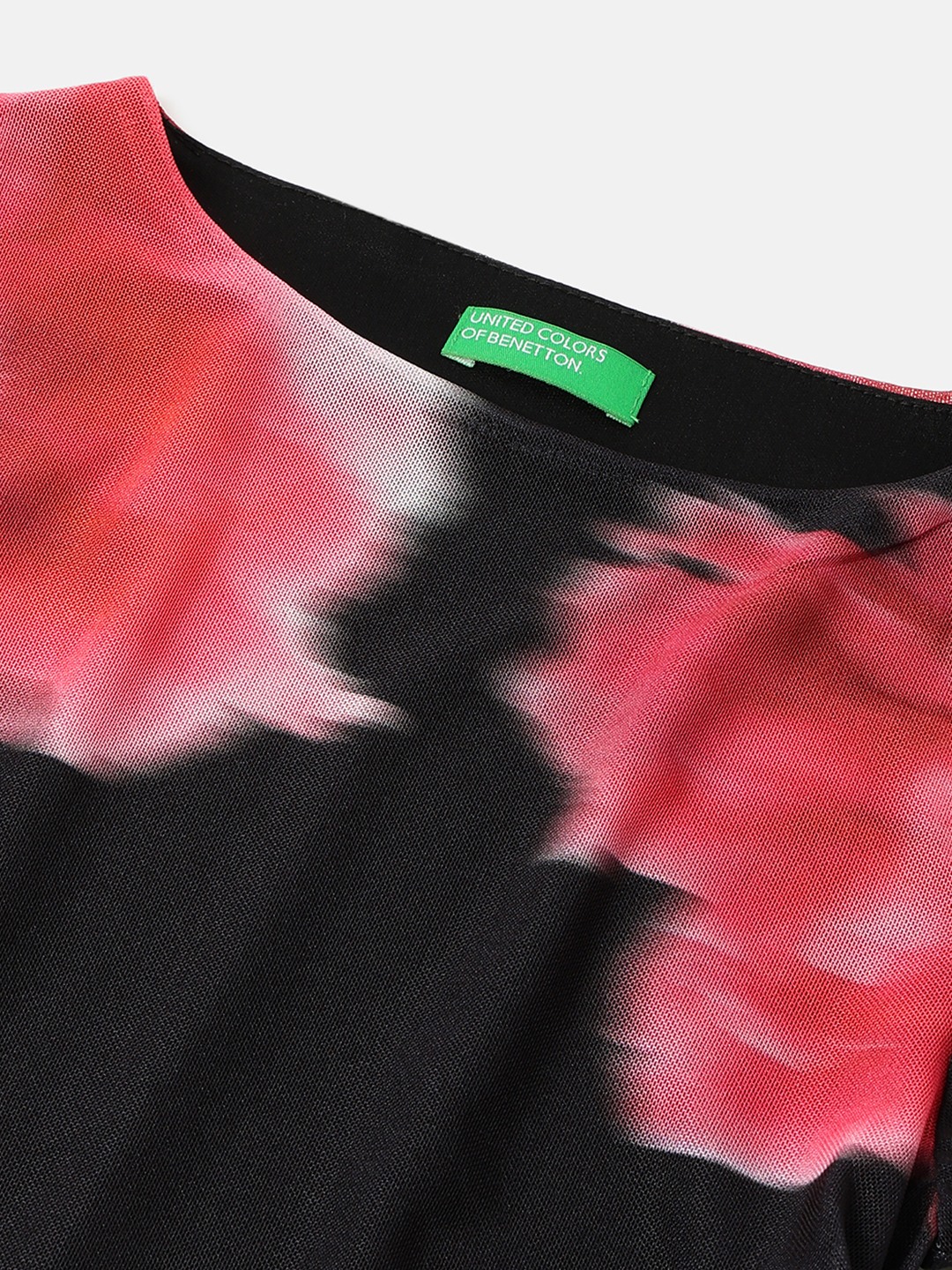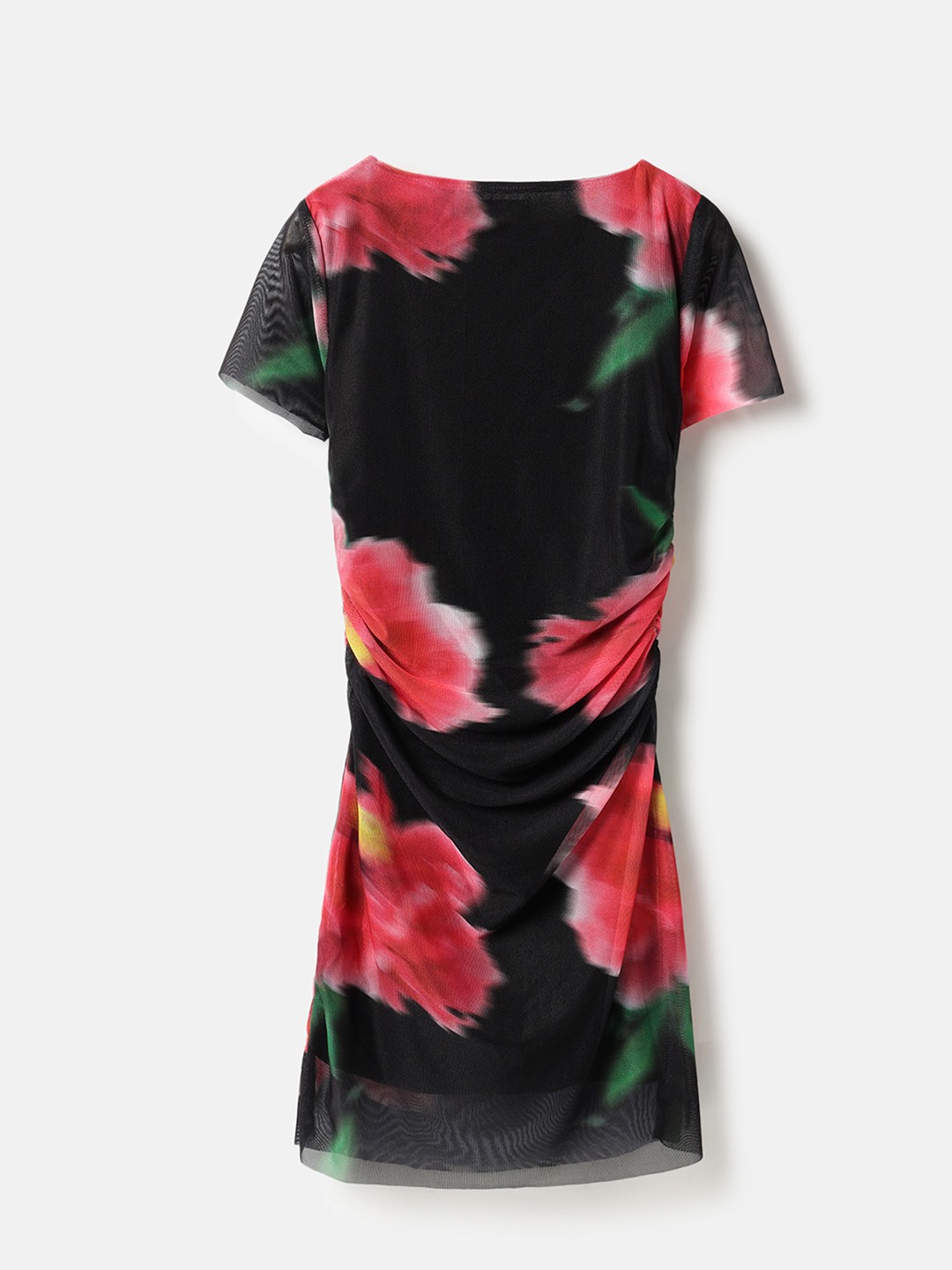 United Colors of Benetton Round Neck Floral Print Large Mesh Bodycon Dress