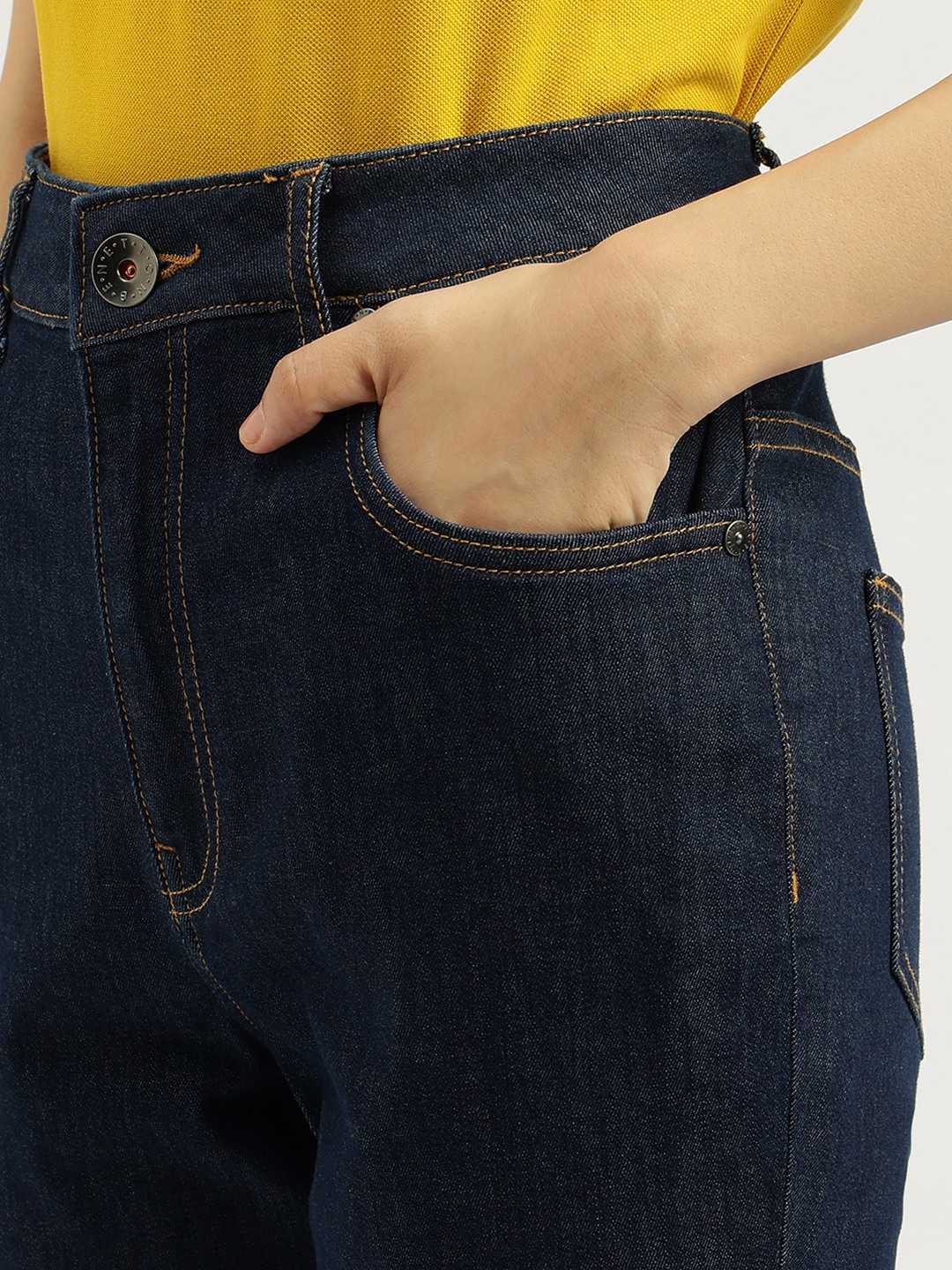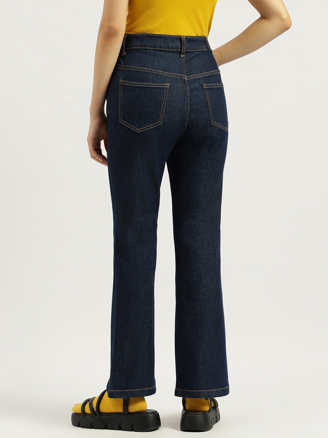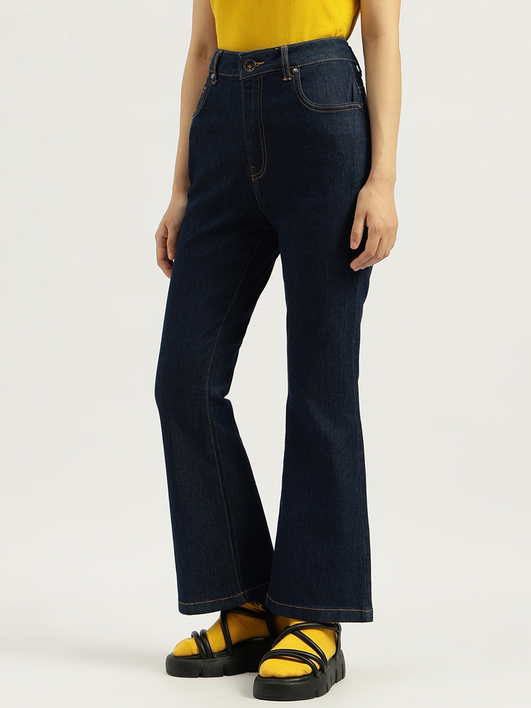 Discover the perfect blend of style and comfort with our blue boot-leg jeans. Featuring a high-rise fit and solid pattern, these jeans offer a flattering silhouette. Crafted from a soft cotton blend, they ensure all-day comfort. The convenient zipper closure adds a modern touch, making them a wardrobe essential for ladies.