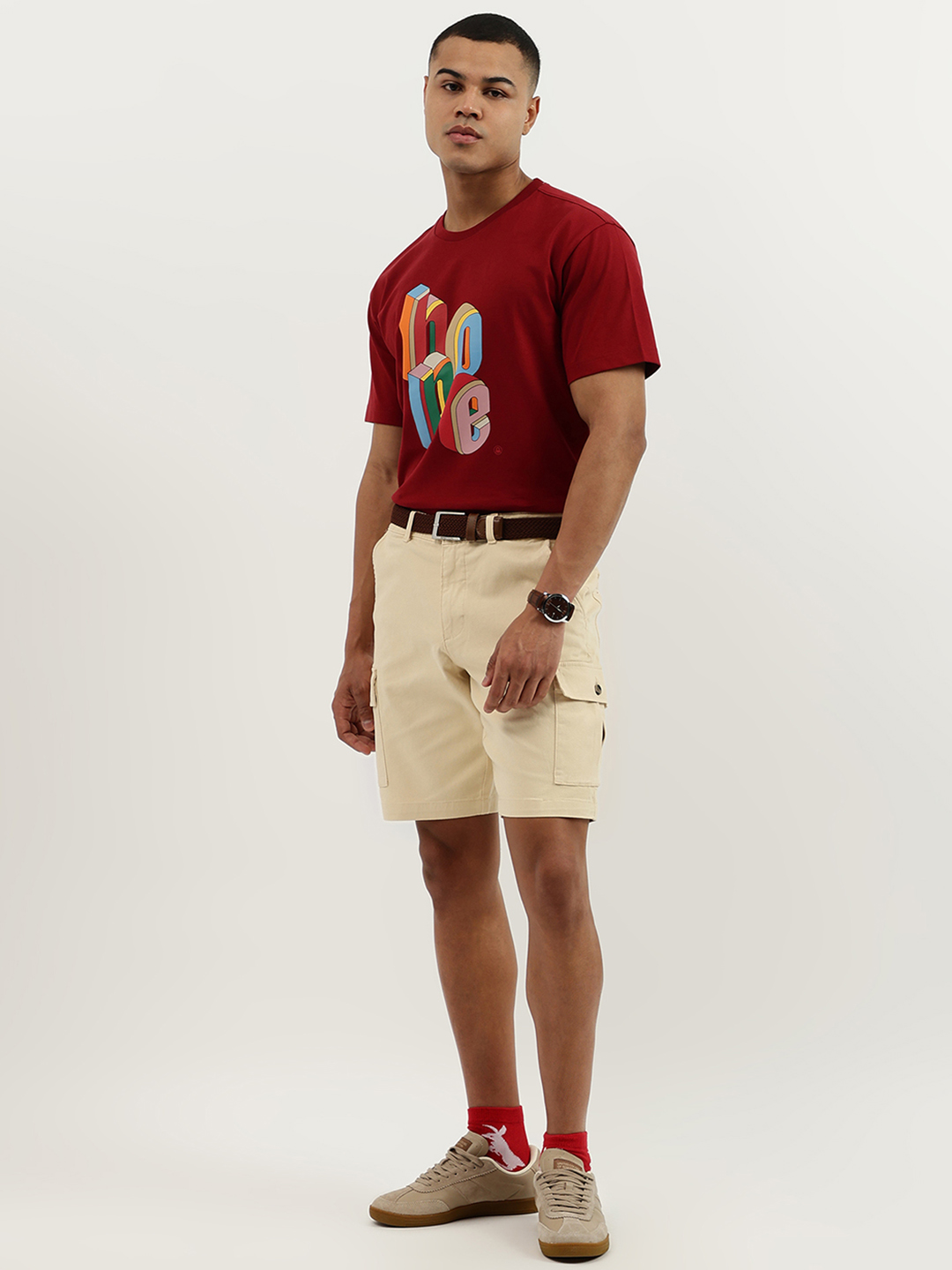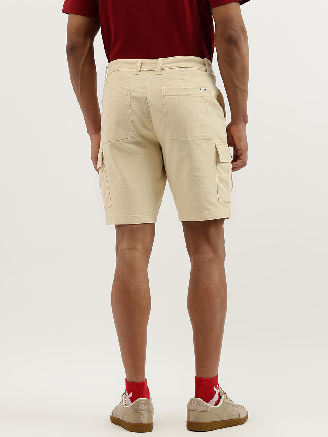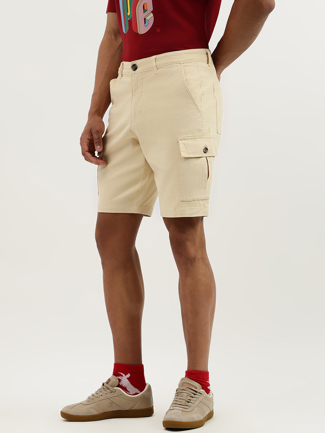 Discover ultimate comfort with our beige cargo shorts for men. Featuring a solid pattern and mid rise design, these shorts offer a relaxed fit. Crafted from a cotton blend fabric, they ensure breathability. The button closure adds a classic touch, making them perfect for any casual adventure.