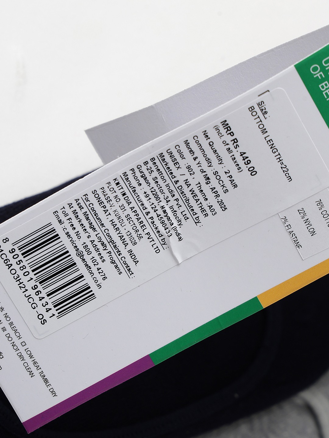 Home/Socks/United Colors of Benetton/united colors of benetton solid pack of 2 invisible liner socks