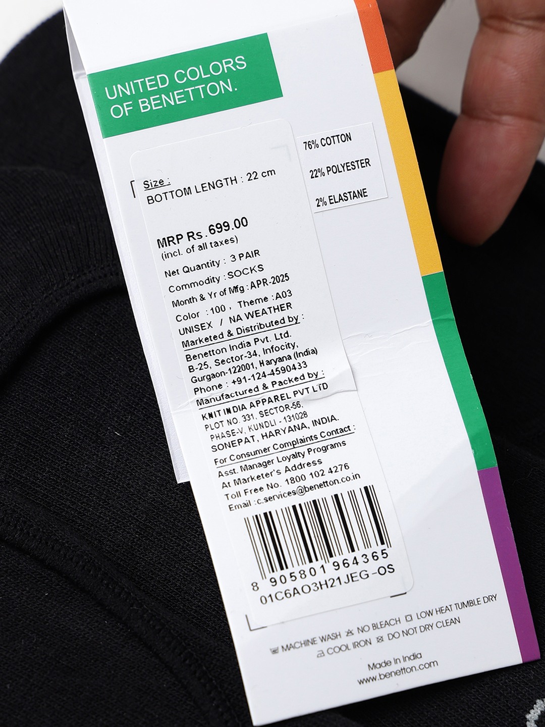 United Colors of Benetton Solid Pack of 3 Invisible Liner Socks