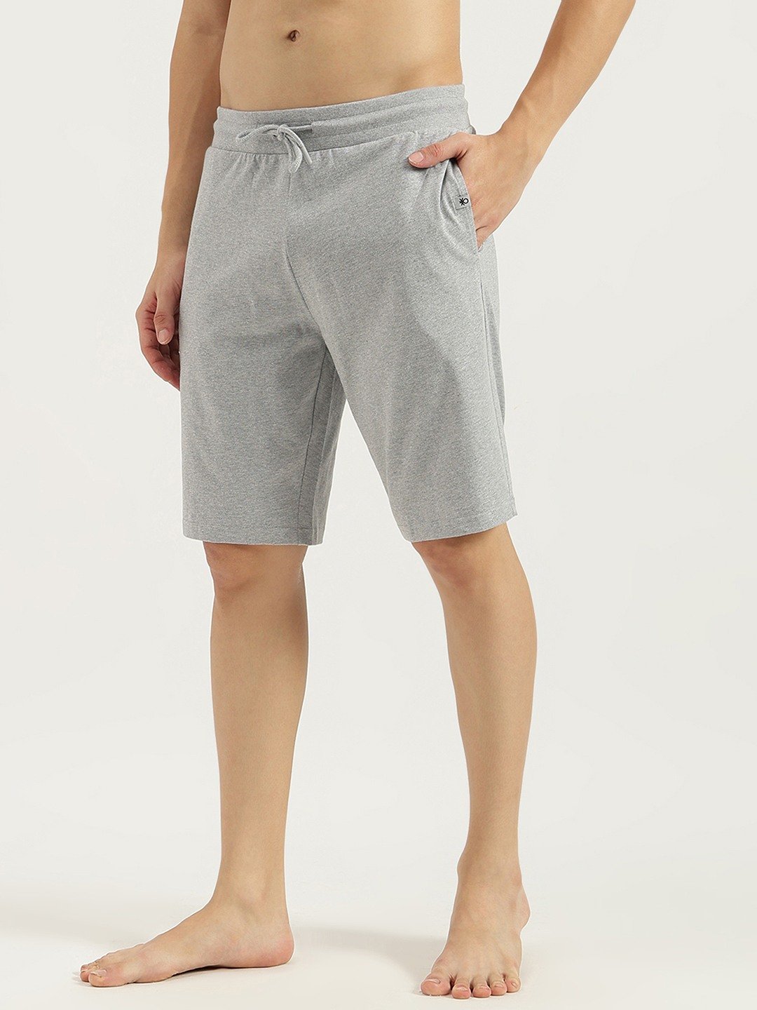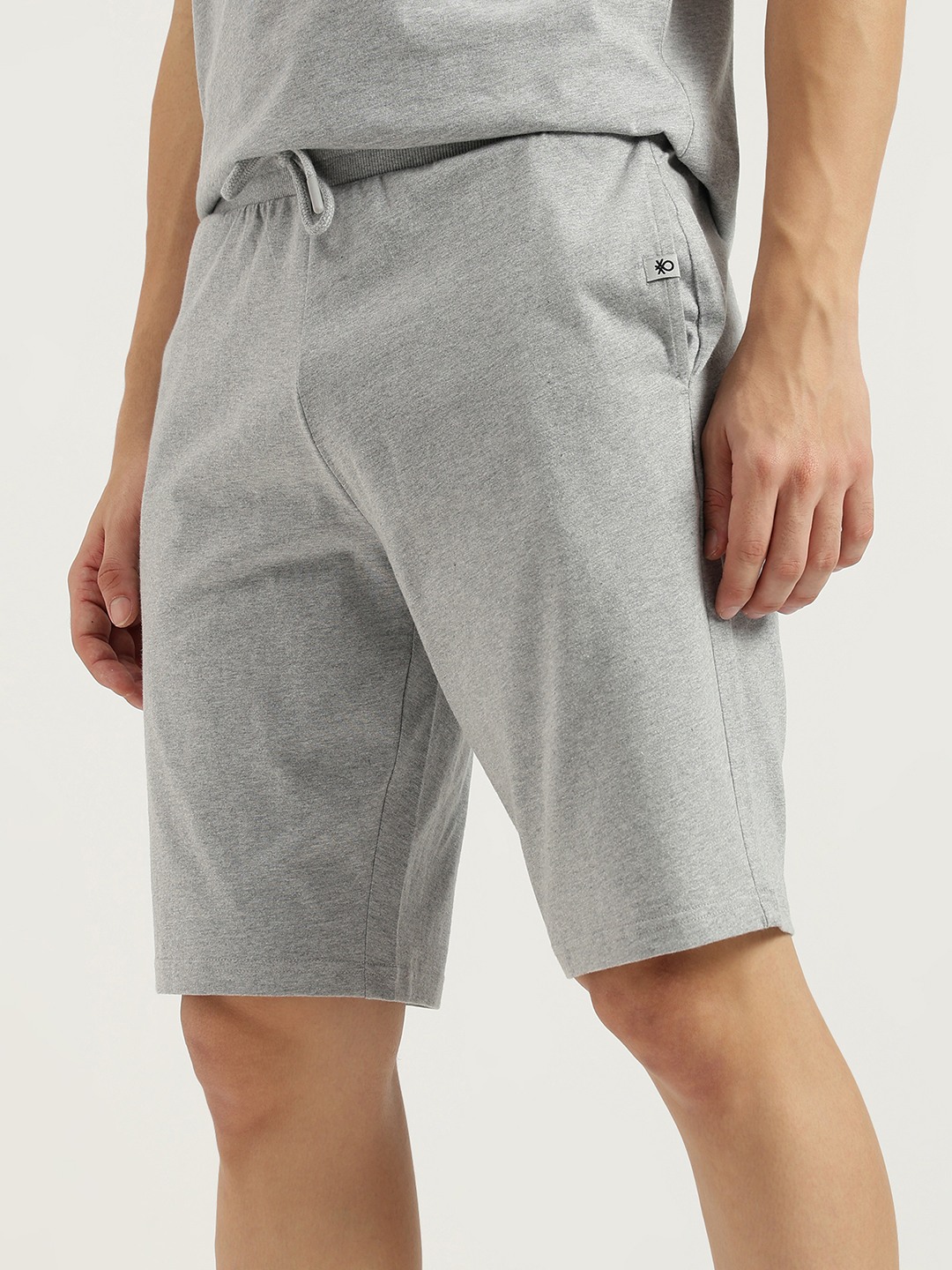 Experience ultimate comfort with our grey knit shorts for men. Crafted from pure cotton fabric these shorts offer a regular fit and mid-rise design. Featuring a solid pattern and drawstring closure they provide a perfect blend of style and functionality. Ideal for casual outings or lounging at home.