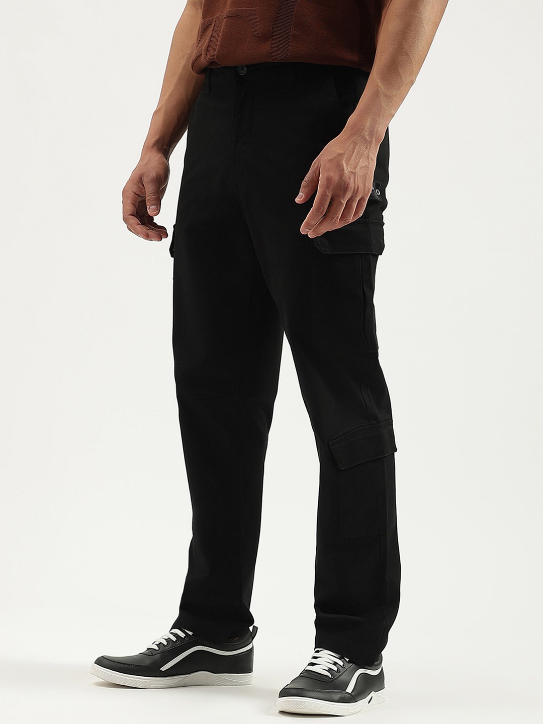Unleash your style with our black cargo pants for men. Featuring a straight fit and solid pattern, these mid-rise pants offer a sleek look. Crafted from a comfortable cotton blend fabric, they ensure durability. The button closure adds a classic touch, making them perfect for any adventure or casual outing.
