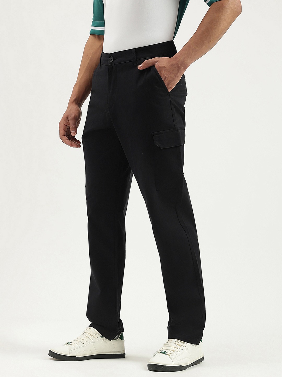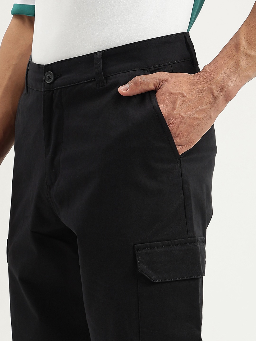 Unleash your style with our black cargo pants for men. Featuring a straight fit and solid pattern, these mid-rise pants offer a sleek look. Crafted from a comfortable cotton blend fabric, they ensure durability. The button closure adds a classic touch, making them perfect for any adventure or casual outing.