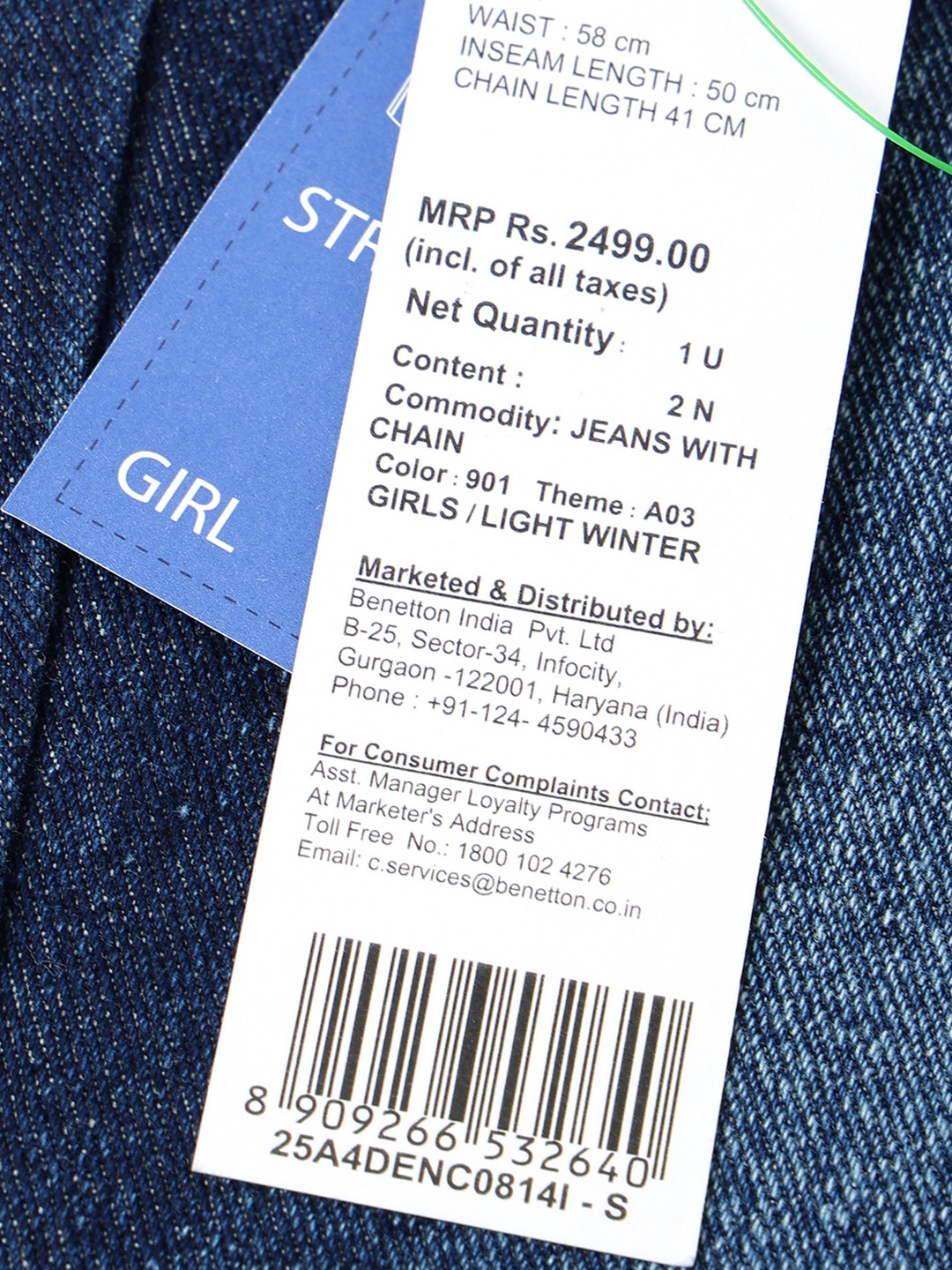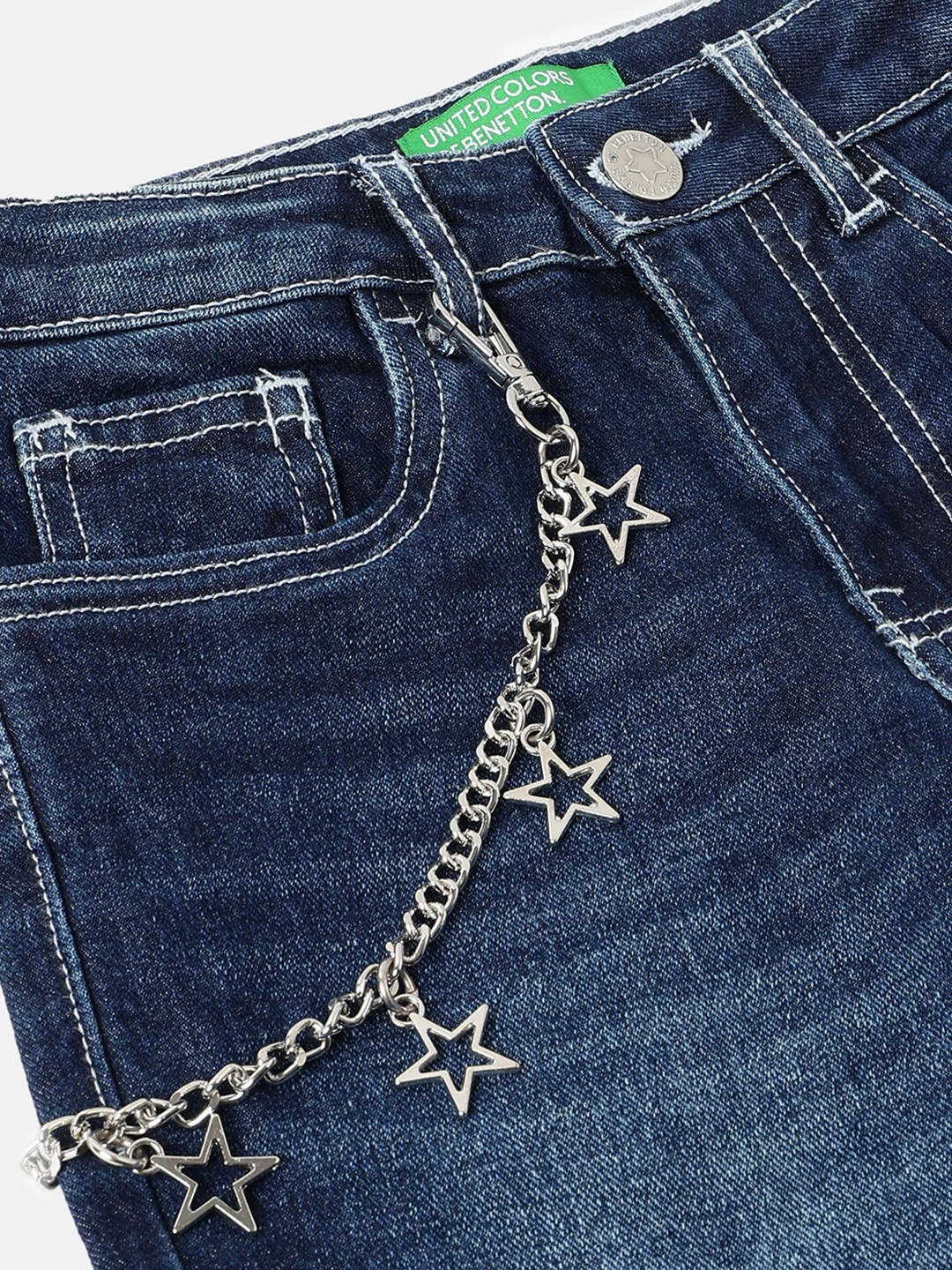 United Colors of Benetton Solid Straight Fit Chain Details With Denim Jeans