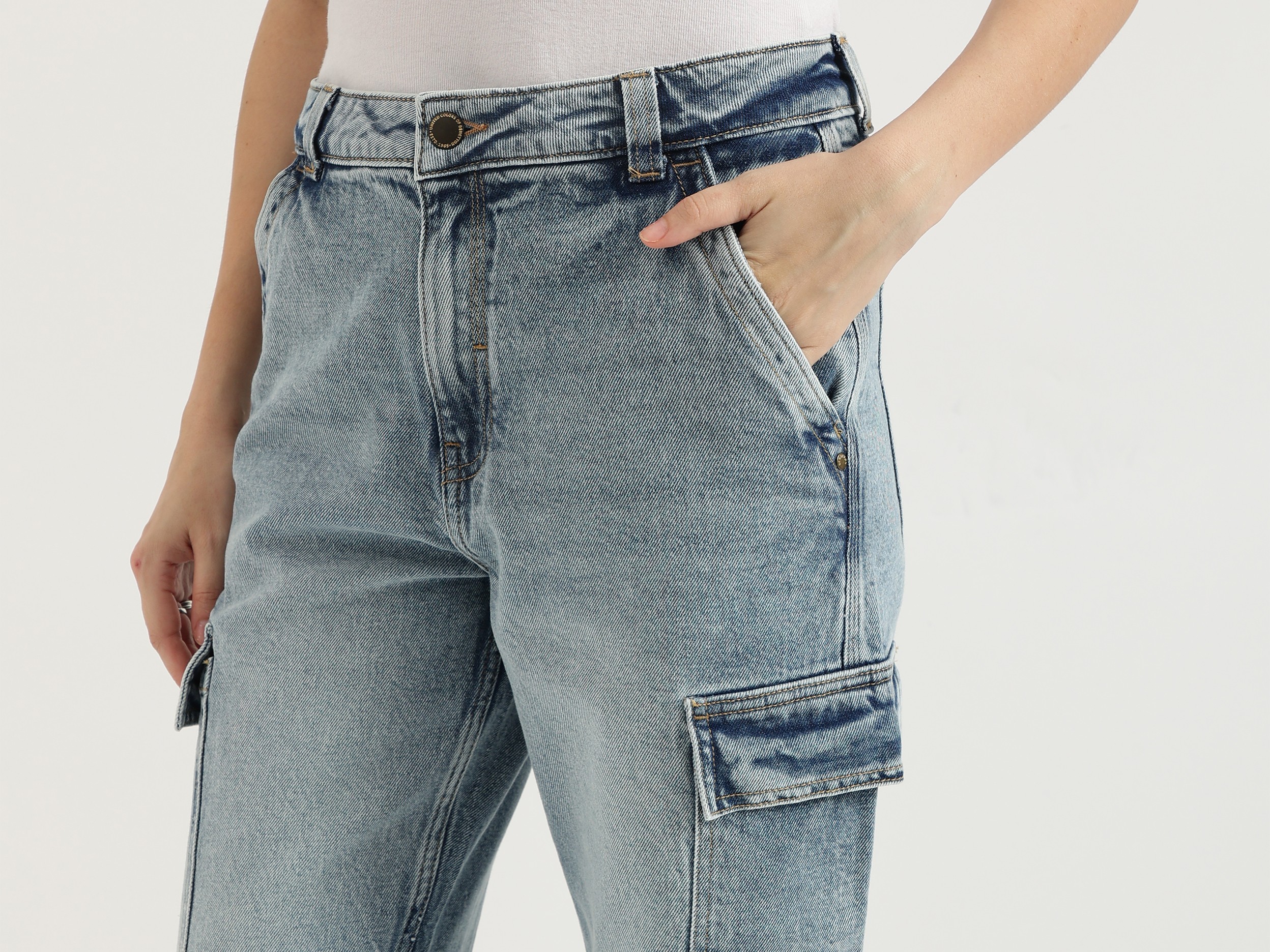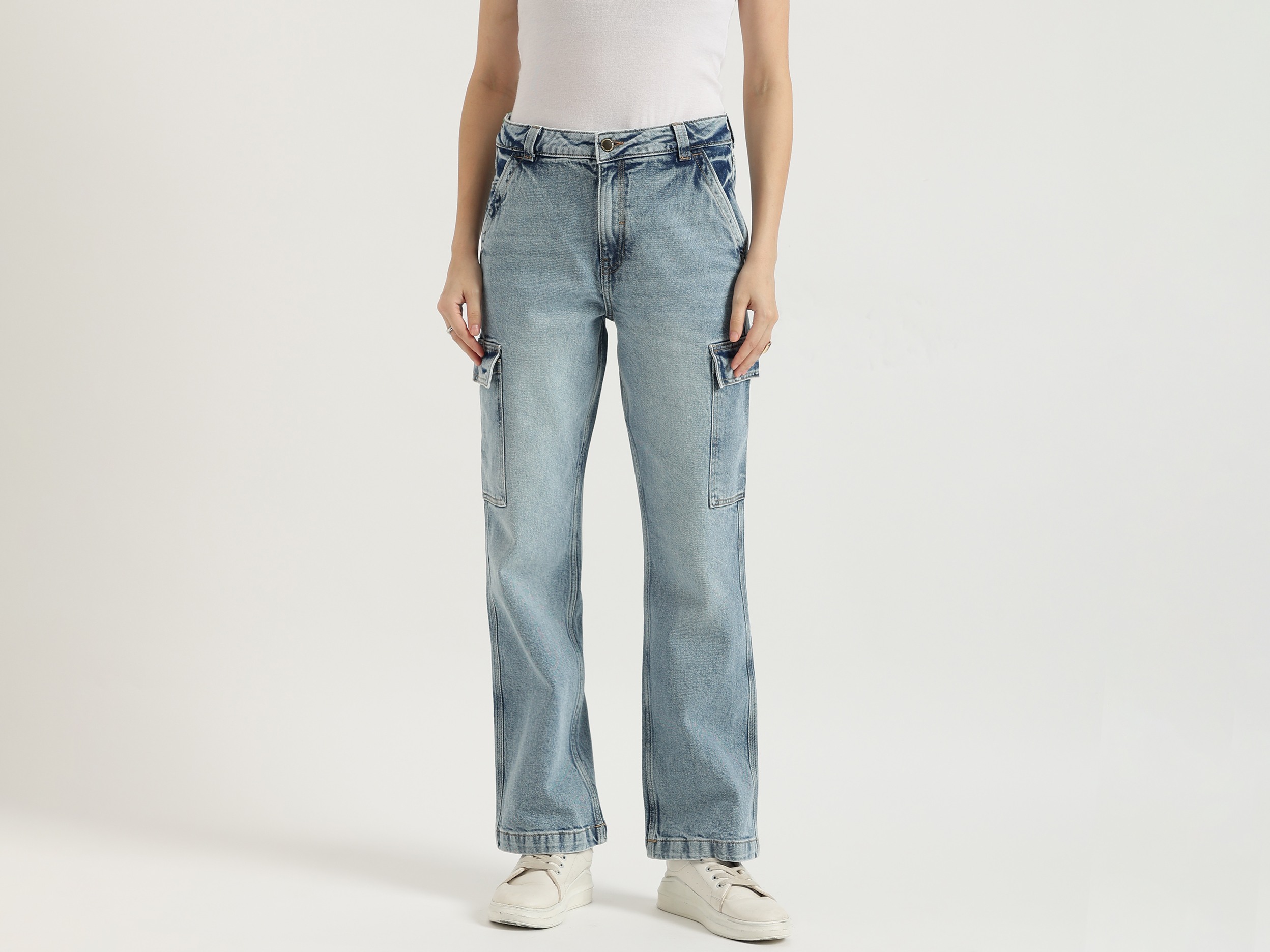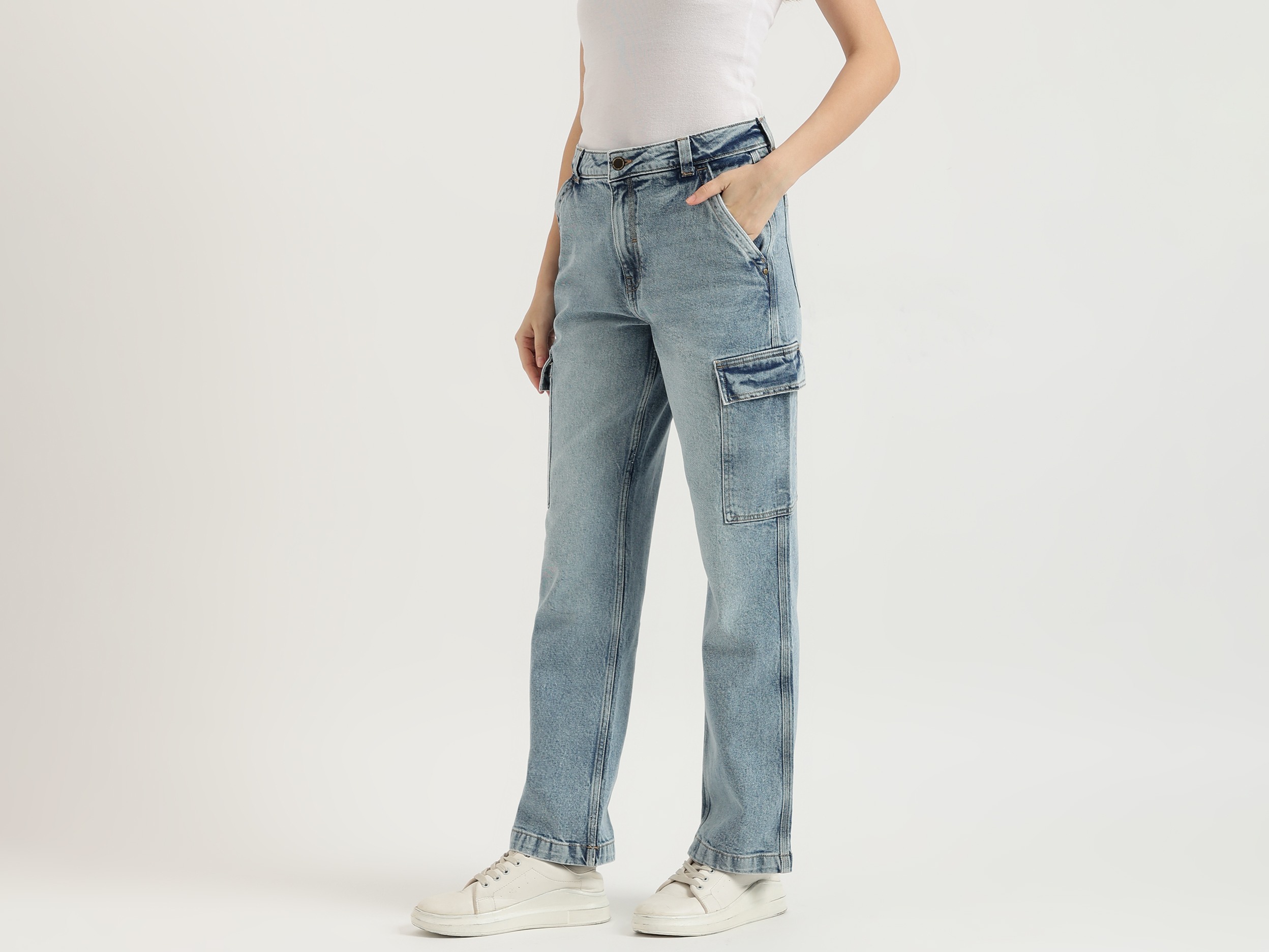 United Colors of Benetton Solid Straight Fit Utility Denim Jeans