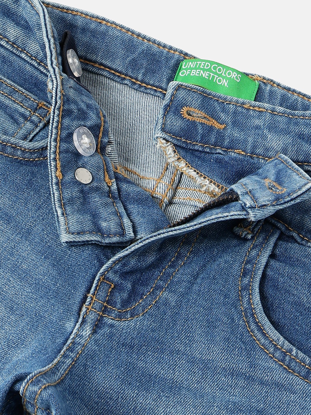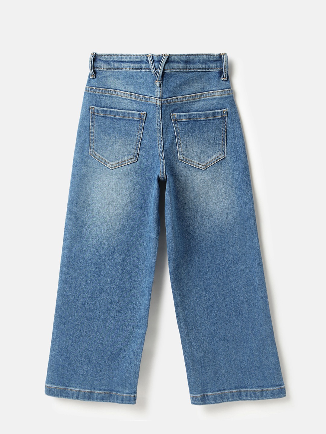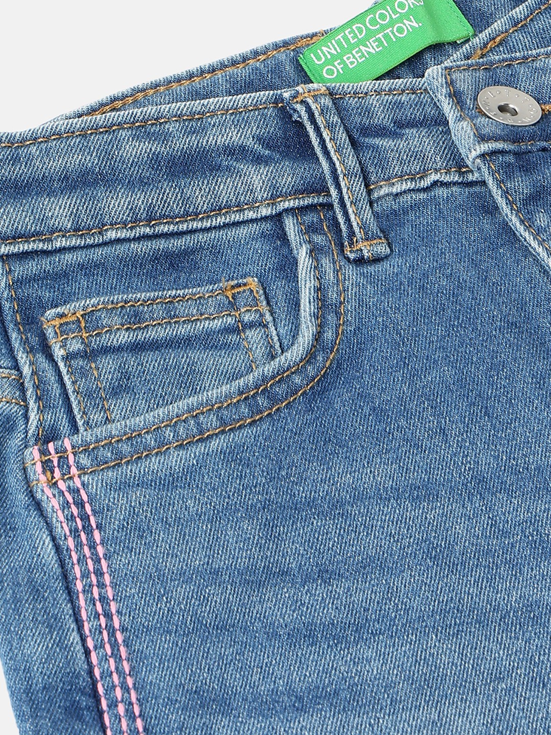 United Colors of Benetton Solid Wide Leg Fit Overlap Contrast Stitch Denim Jeans