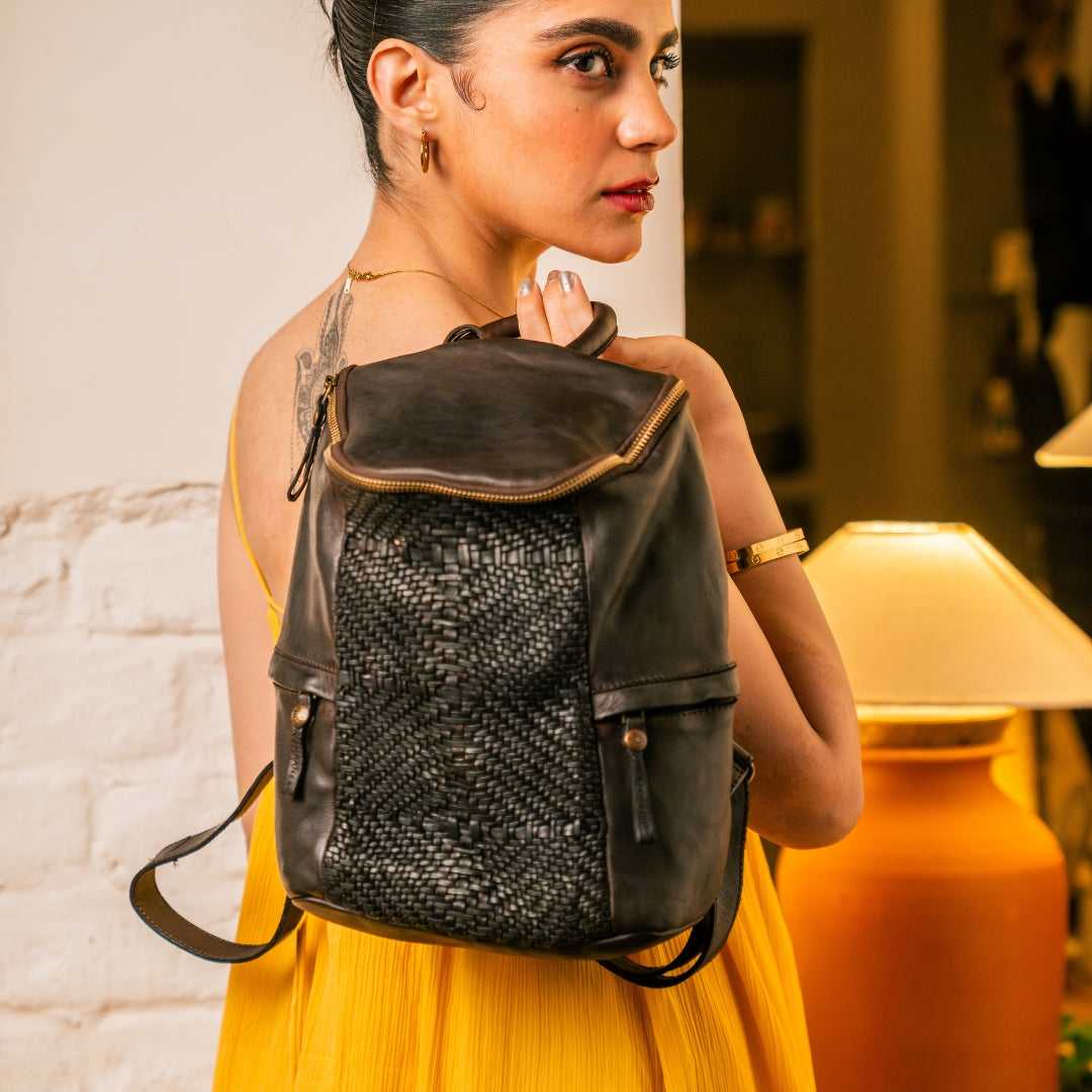 This handcrafted weave showcases an intricate, symmetrical pattern with diamond and geometric detailing. Made from vegetable-tanned leather laces, it features a tight, uniform herringbone-style design that creates a flowing, dynamic visual effect. The diagonal alignment of the weave adds a sense of movement while offering a structured silhouette. It beautifully blends traditional craftsmanship with a modern, organic aesthetic, making it both visually striking and timeless.