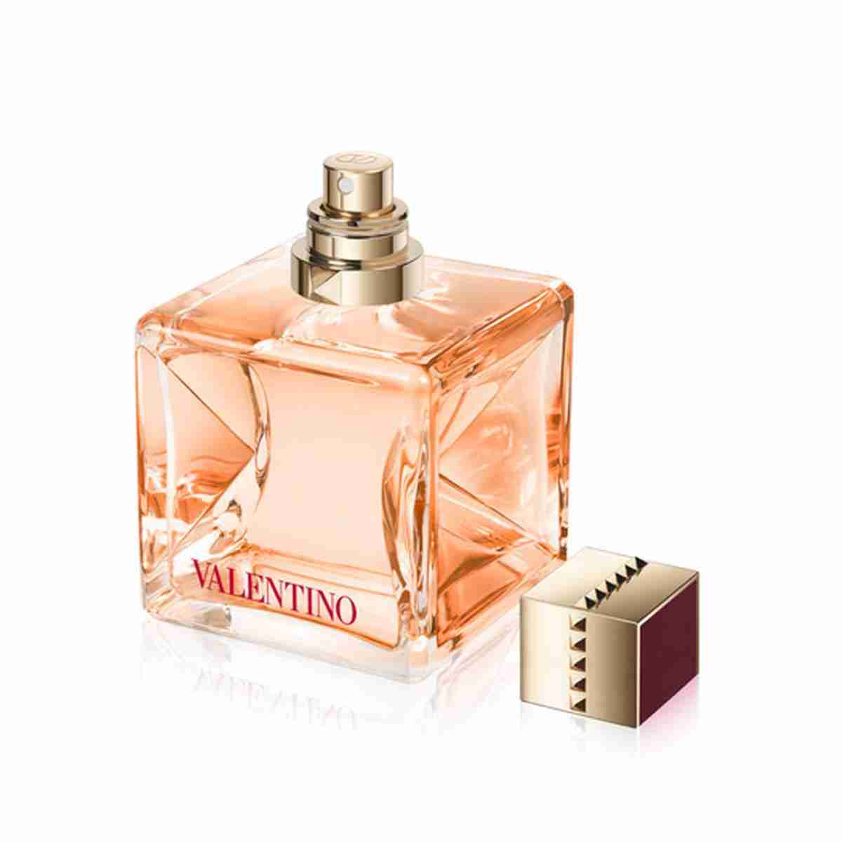 The Bottle: A sleek block of glass reflects the light passing through its golden-hued scent allowing a V shape of light to emerge. Square and notched on the sides, the Voce Viva bottle is an accessory, designed for touch. The Rockstud, signature of Maison Valentino, inspired by Roman architecture, adorns the fragrances top and collar for modern edgy elegance. Red has always been the iconic color of the house, it's the language we speak and forms a part of Valentino's identity. This specific deep burgundy shade of red that signs Voce Viva Intensa is not only a symbol of power and of glamour but is also personal and romantic.
