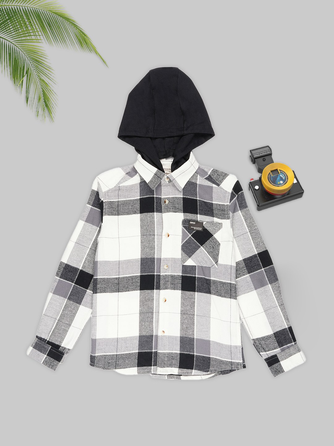 A cool-weather staple that strikes the right balance between smart and casual. Crafted in soft brushed flannel with a monochrome check pattern, it features a detachable jersey hood, buttoned cuffs, and a patch pocket for an effortless layered look. Built for comfort with a dash of laid-back style.