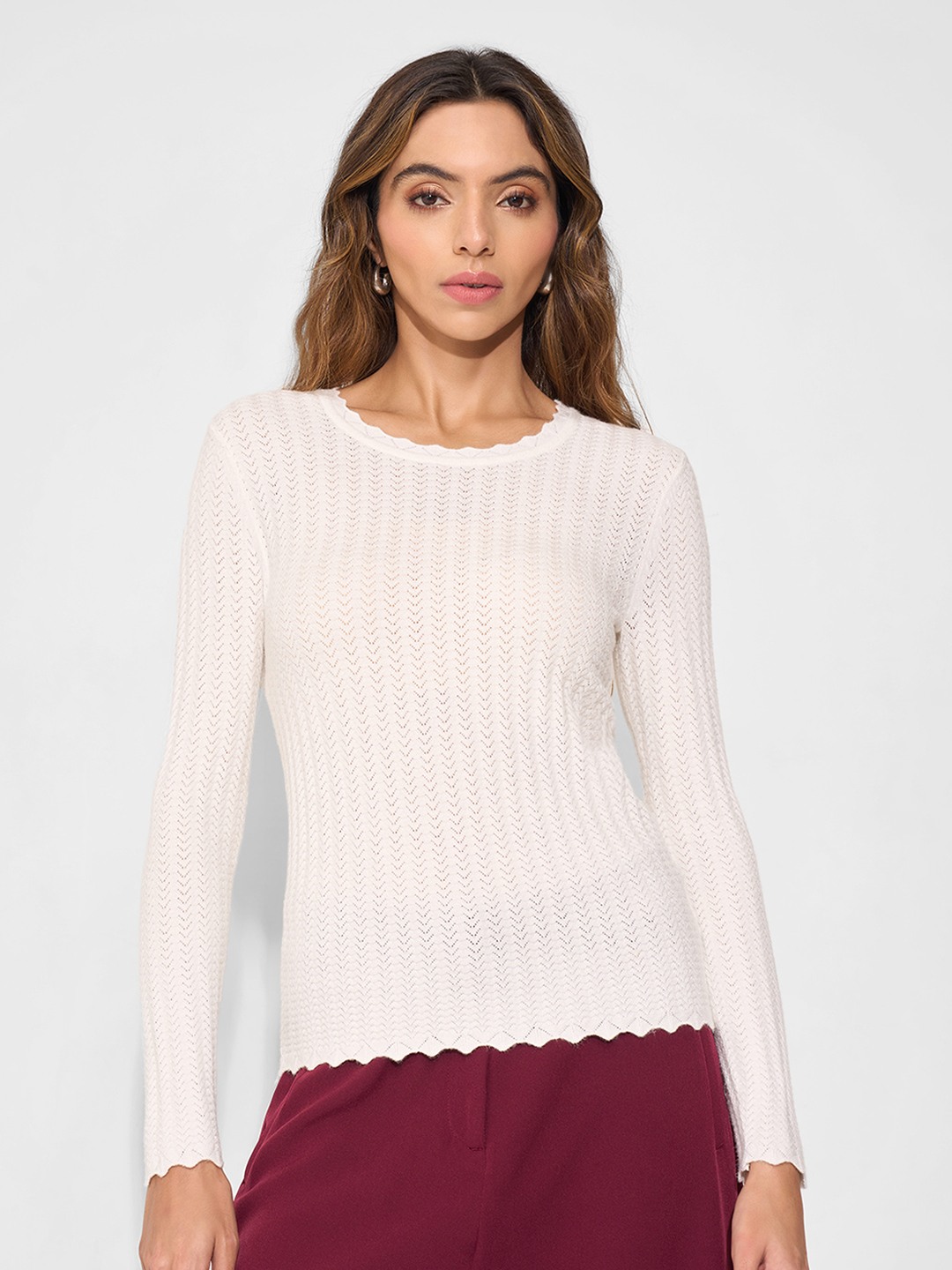 Home/Tops/Annabelle by Pantaloons/white pointelle knit top