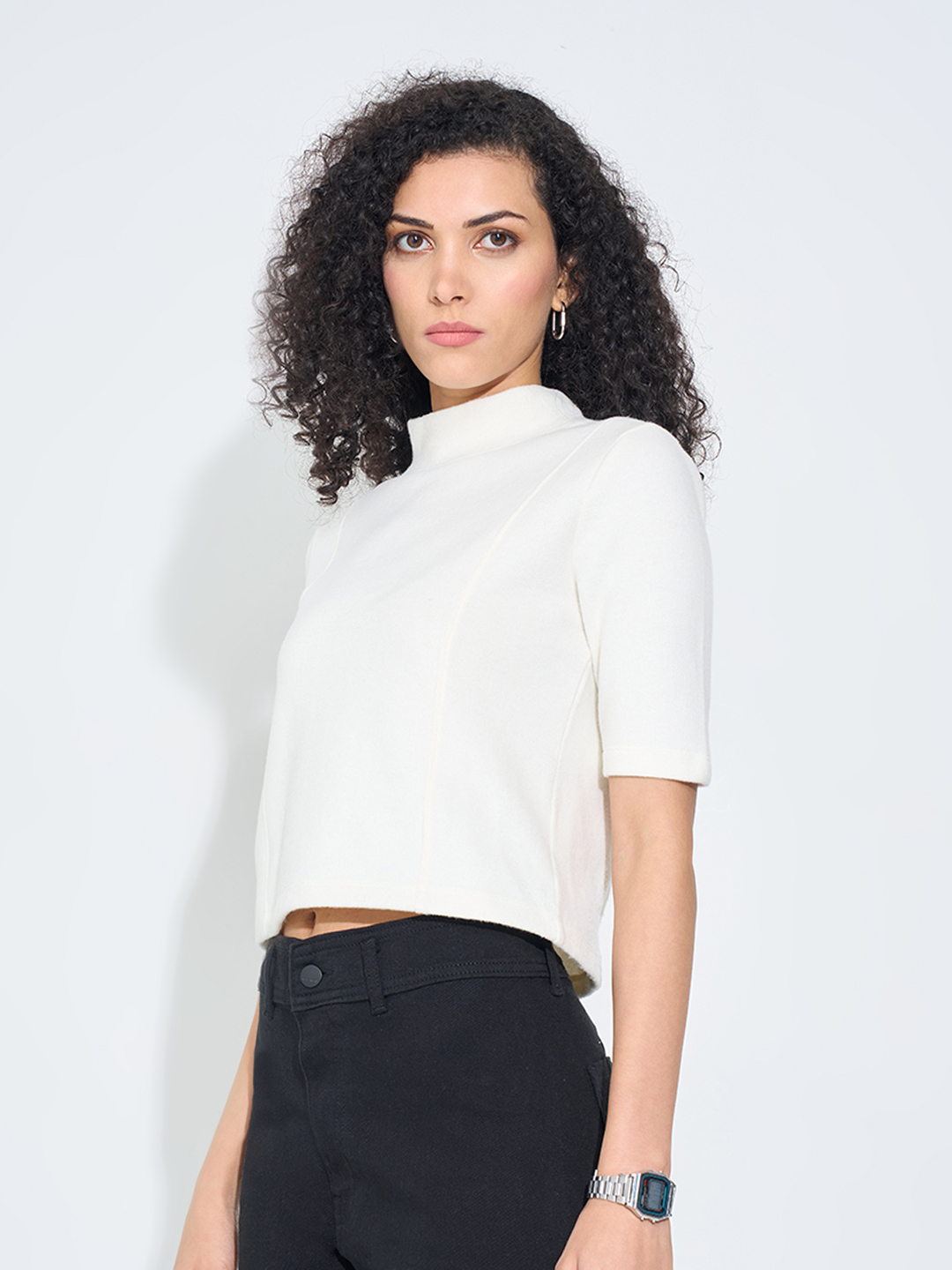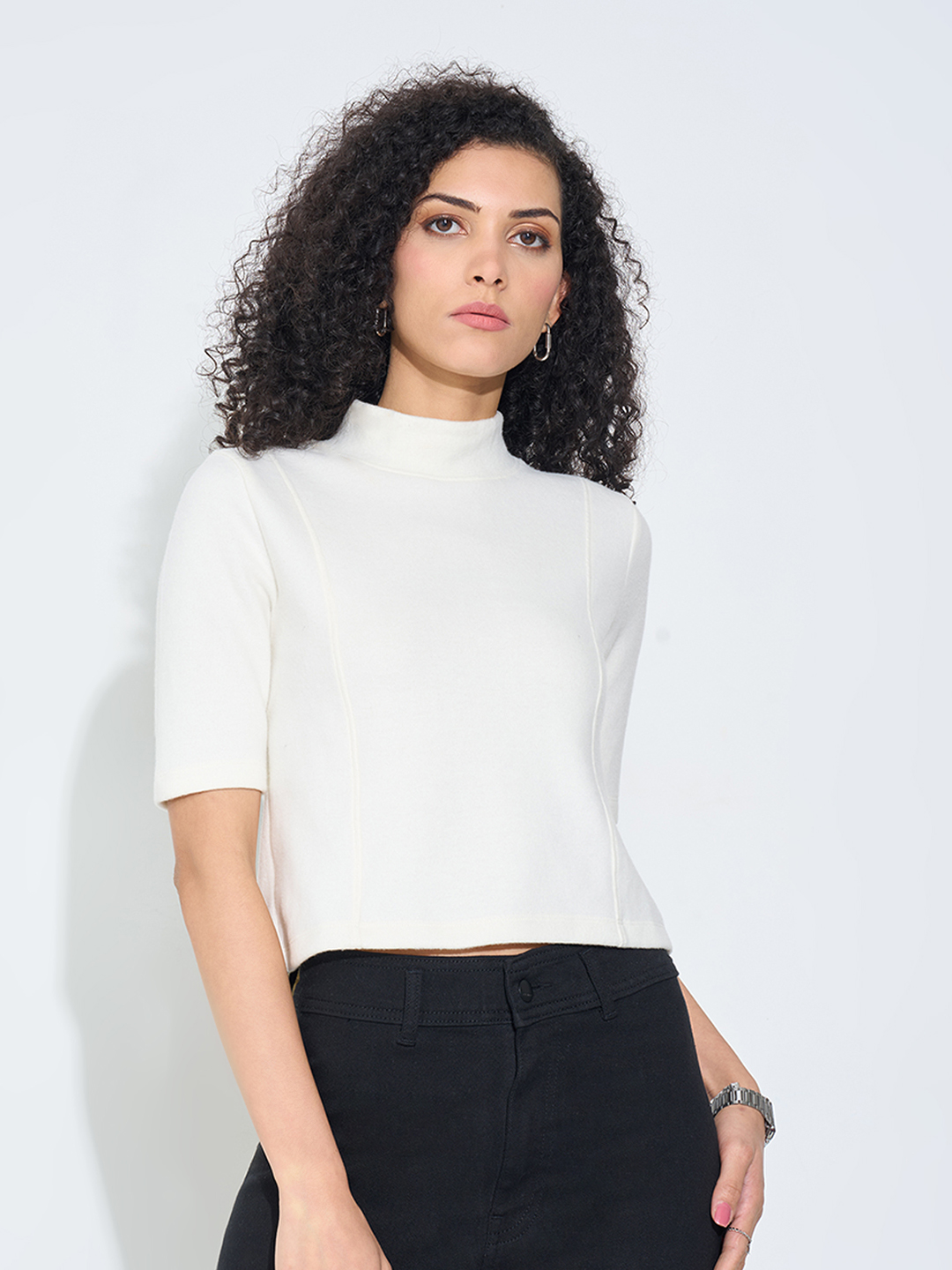 Home/Tops/SF JEANS by Pantaloons/white solid high neck brushed top
