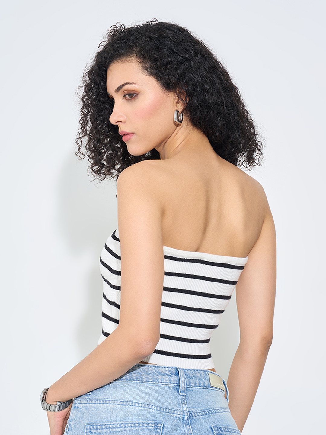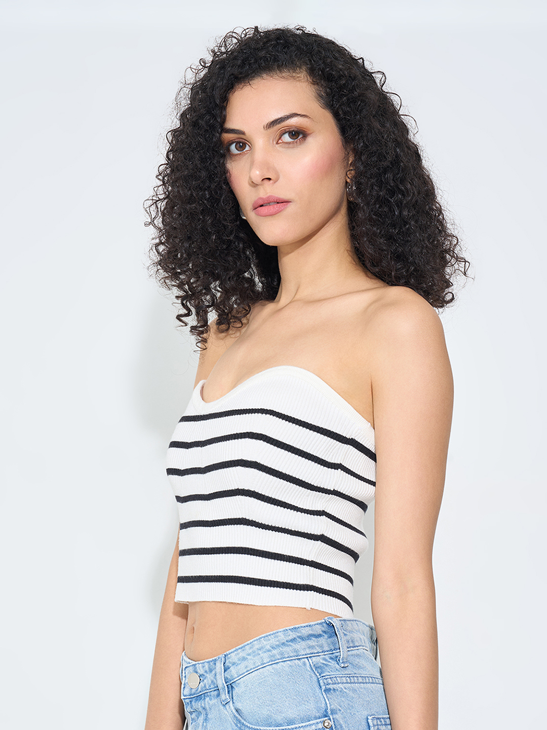 Home/Tops/SF JEANS by Pantaloons/white striped strapless ribbed crop top