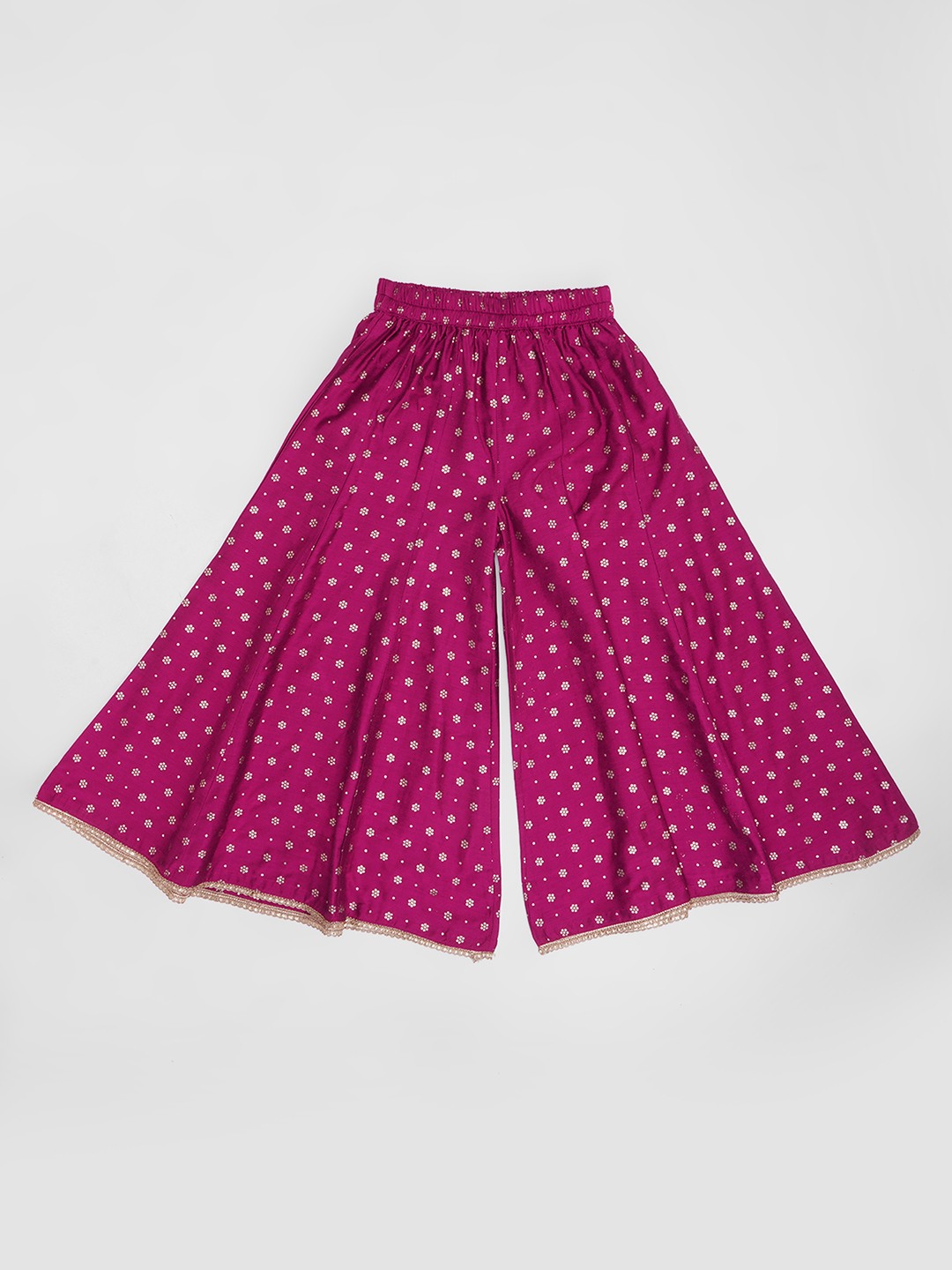 Wine Embroidered Top Panelled Palazzos & Sheer Overlay Set
