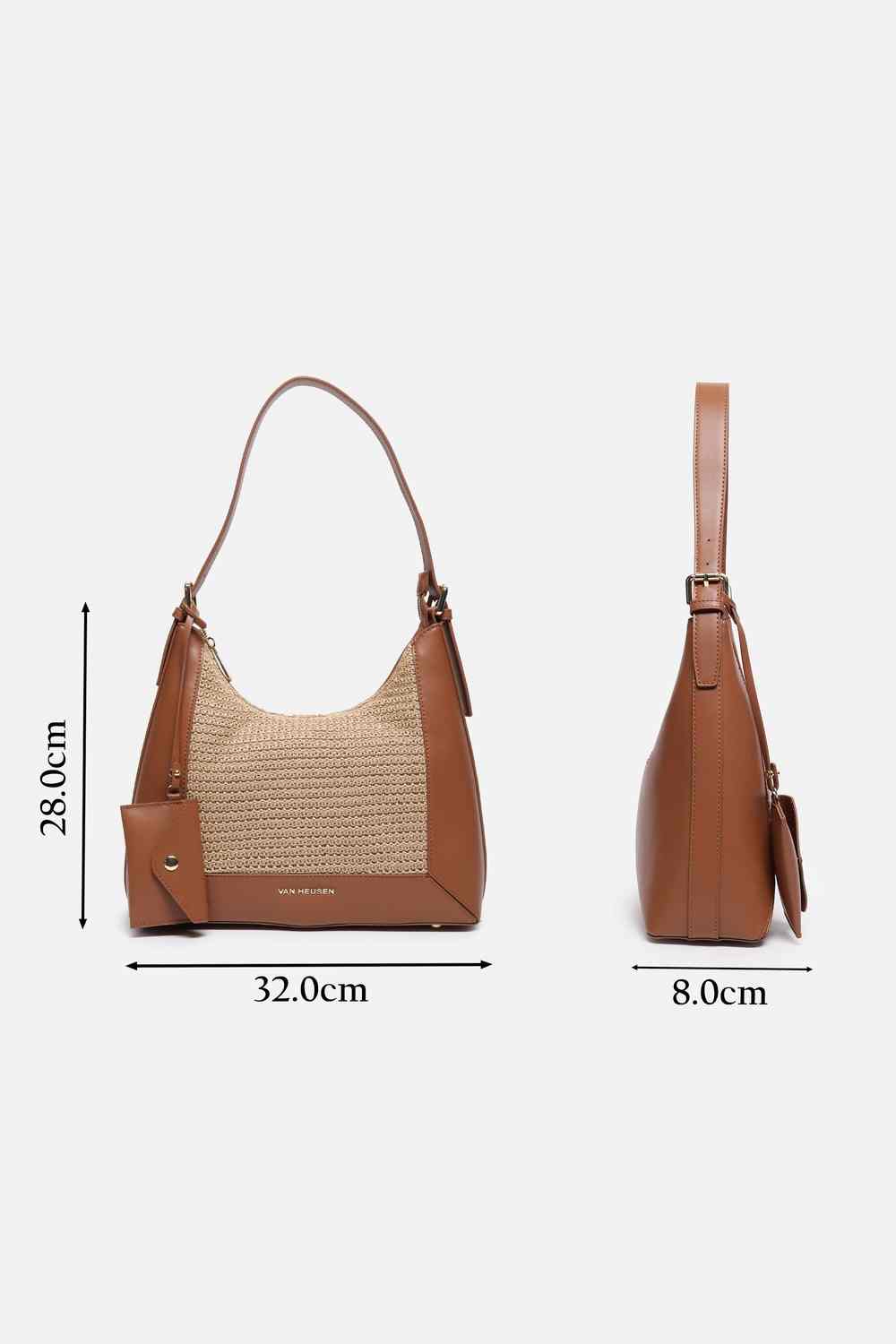 Discover the elegance of the Van Heusen beige handbag, crafted from high-quality vegan leather. This casual accessory seamlessly complements any outfit, offering a chic and sophisticated addition to your collection. The handbag's versatile design provides ample space for essentials while reflecting your commitment to sustainable fashion. Elevate your style with this unique piece that effortlessly blends fashion with eco-conscious choices.