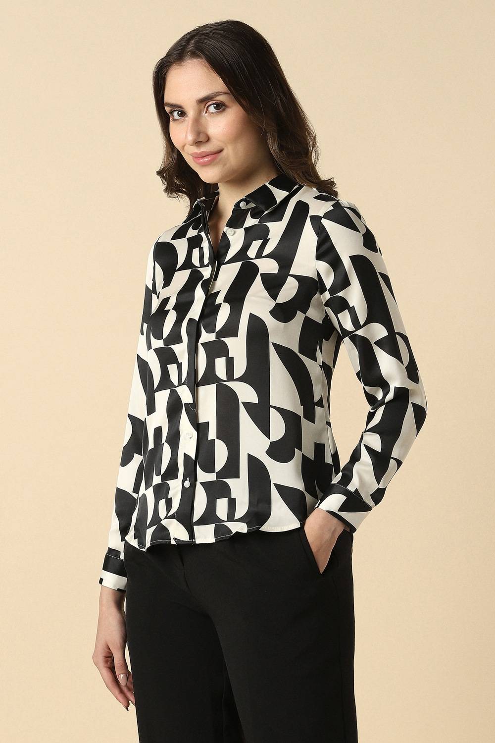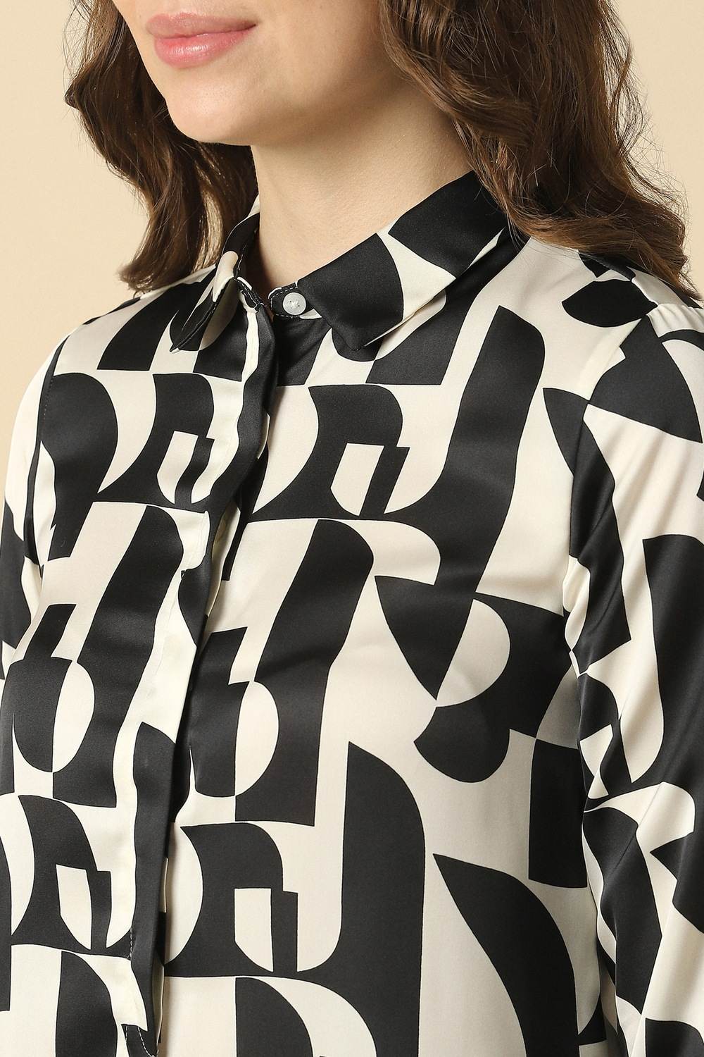 Exude sophistication in any formal setting with this elegantly designed shirt from Allen Solly. The beige and print combination enhances the timeless appeal, while the blend of polyester and spandex guarantees both comfort and durability throughout your day. Perfectly tailored to create a graceful silhouette, this piece complements your corporate wardrobe effortlessly. Ideal for work or special occasions, it’s sure to attract admiration without compromising on style.