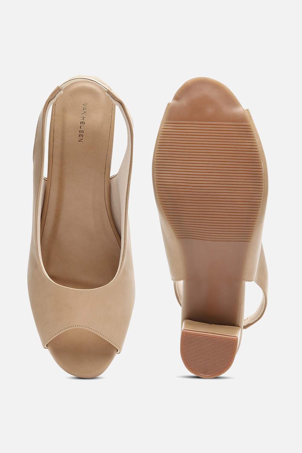 Step out in style with these Van Heusen casual heels, crafted from eco-friendly vegan leather and featuring a chic beige hue. Designed for comfort, the sturdy EVA sole ensures stability while walking. Perfect for day-to-night transitions, these solid-pattern sandals elevate your casual outfits with elegance. Experience a blend of sophistication and sustainability that enhances your wardrobe effortlessly. Discover the perfect fit for your next outing.