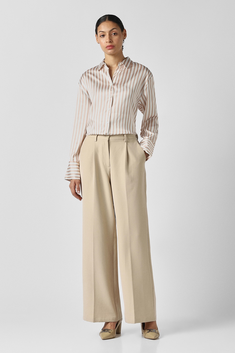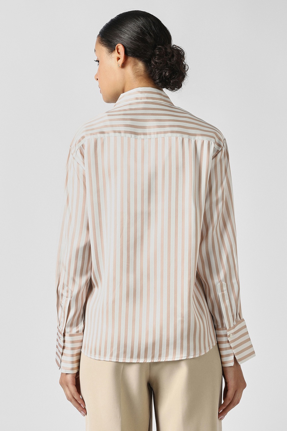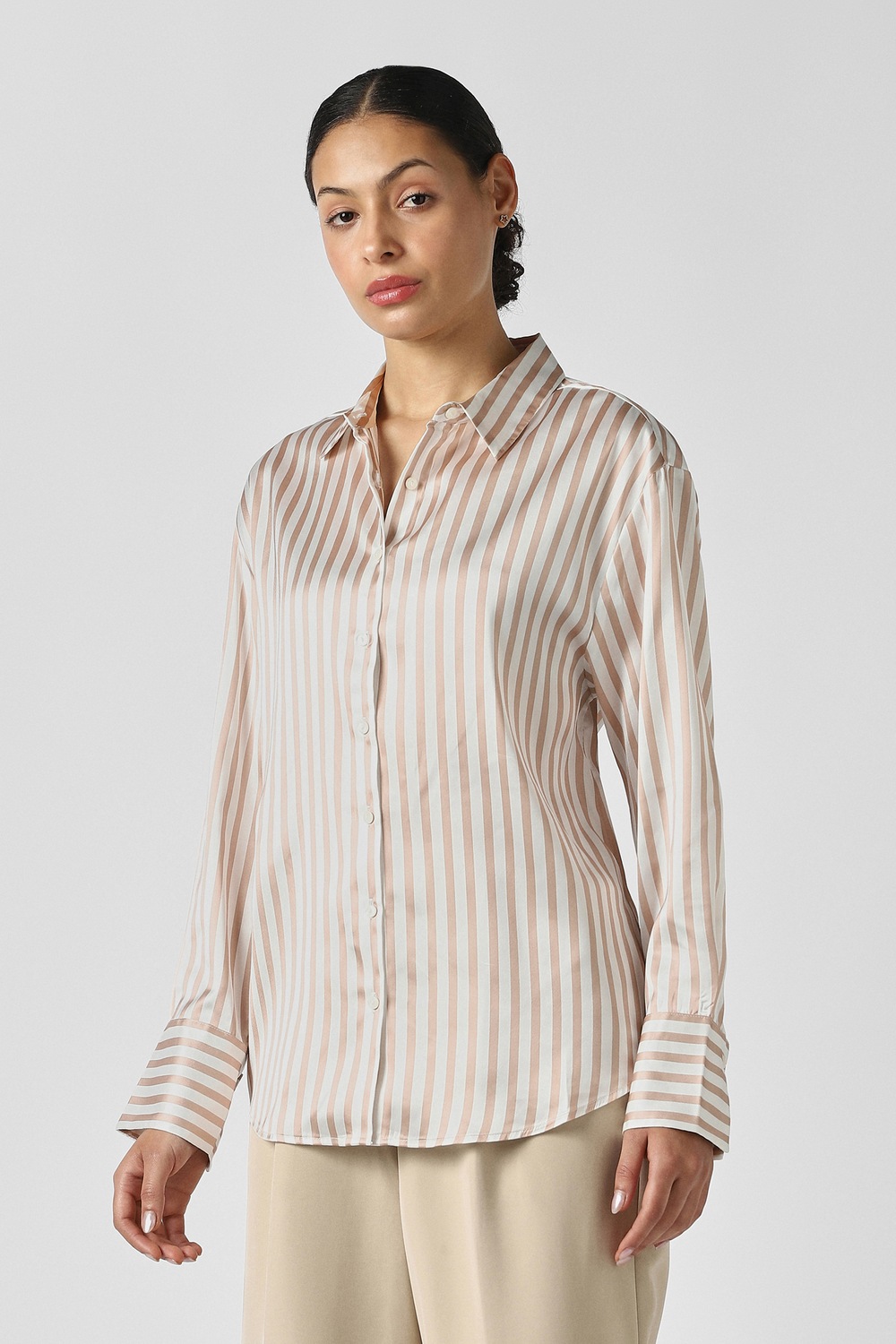 Elevate your professional wardrobe with this polished Van Heusen shirt. Crafted from high-quality polyester, this beige shirt features a contemporary stripe pattern that adds sophistication to your look. Designed for formal occasions, it offers a comfortable fit, ensuring you maintain elegance throughout your day. The refined details make it an essential addition for any stylish woman's collection, promising to keep you chic and confident at every event.
